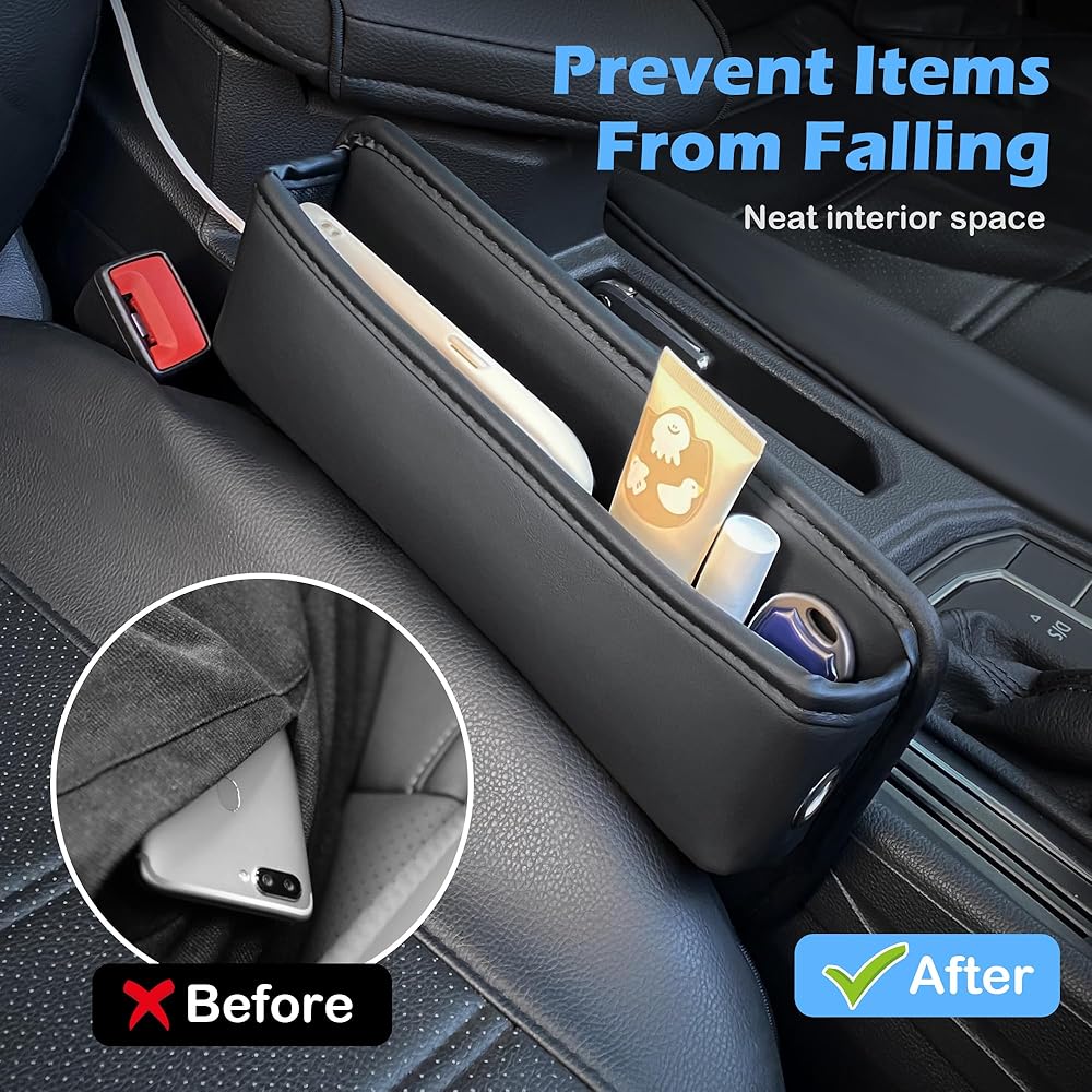 🚗【Upgraded Car Seat Gap Filler】The upgraded car seat gap filler organizer can effectively fill the gap between the seat and the center console. This human-designed car seat gap filler can quickly store and organize your beloved car items, preventing small items such as glasses, keys, cards, mobile phones, etc. from often falling into gaps and making it difficult to find. Make your car more tidy and organized with this car gap filler, which is perfect for your daily travel items storage needs.
