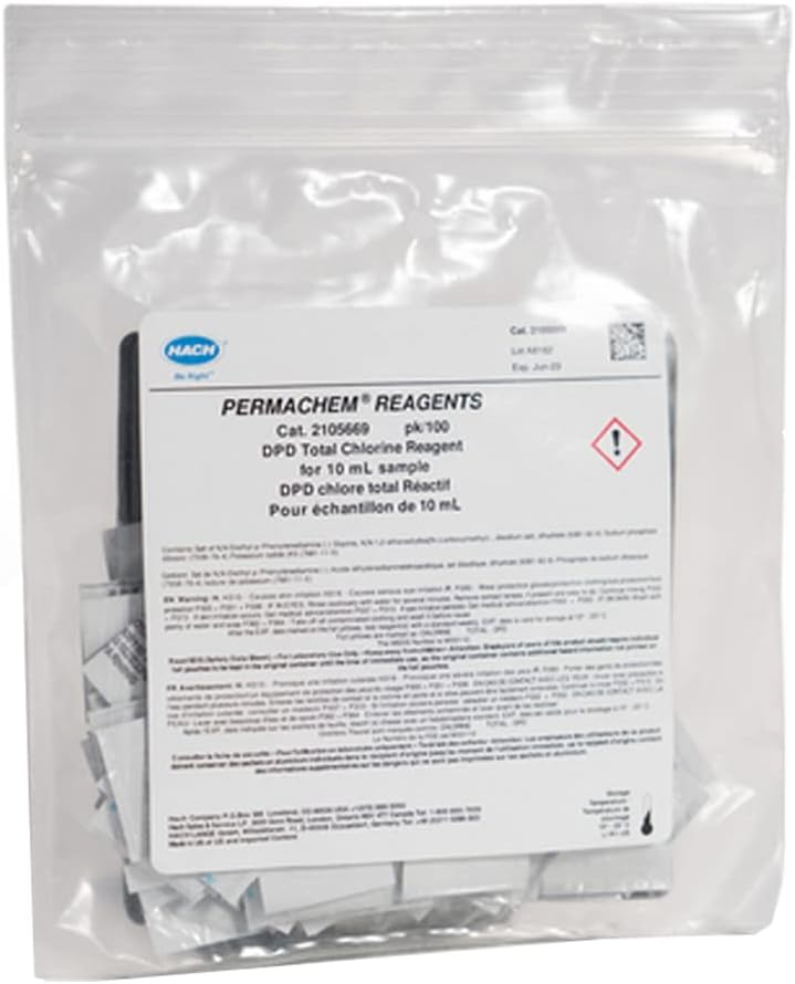 Hach DPD Total Chlorine Reagent Powder Pillows, 10 mL, (Pack of 100), Chlorine Testing, Water Quality Reagents, Reliable Chlorine Measurement, Convenient Chlorine Testing Pack, 2105669