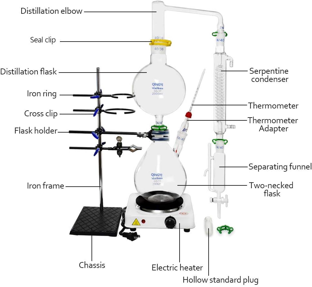 2. The liquor inside of the distillation flask can't be more than 2/3 of volume or fewer than 1/3 of volume.