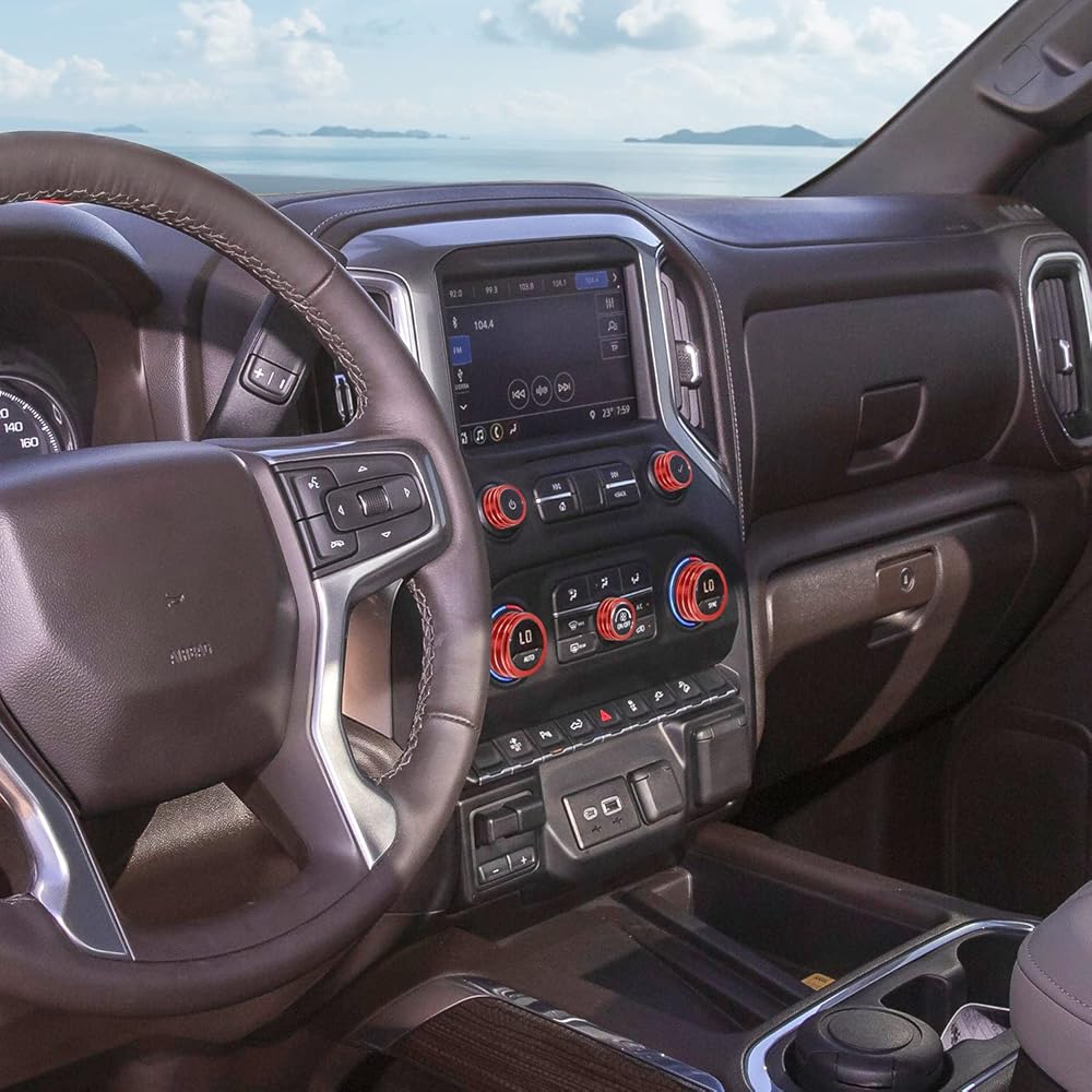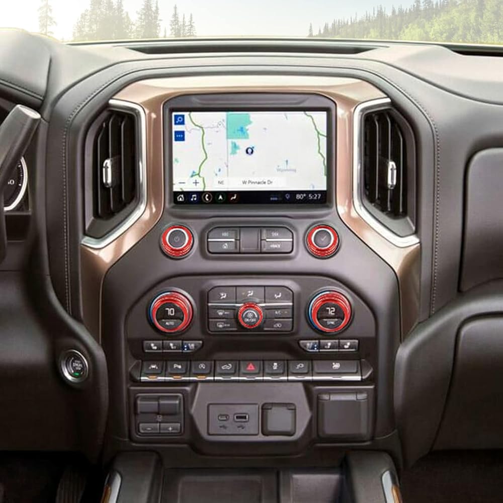Radio AC Knobs Air Conditioner Switch Button Center Console Switch Knob Cover Trim for 2019-2023+ Chevy Silverado GMC Sierra ,2020+ Suburban,2021+Tahoe,2021+ GMC YUKON Aluminum Alloy 10PCS