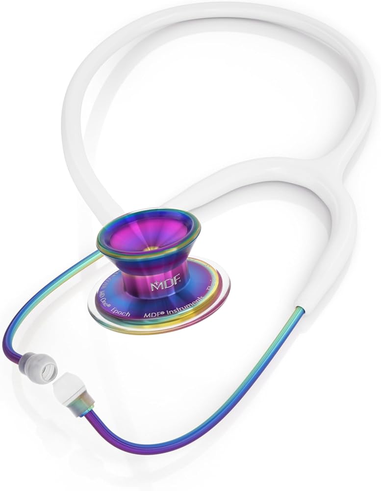 MDF Instruments, White-Kaleidoscope MD One Epoch Lightweight Titanium Stethoscope, Adult, Free-Parts-for-Life, White Tube, Kaleidoscope Chestpiece-Headset, MDF777TKL29