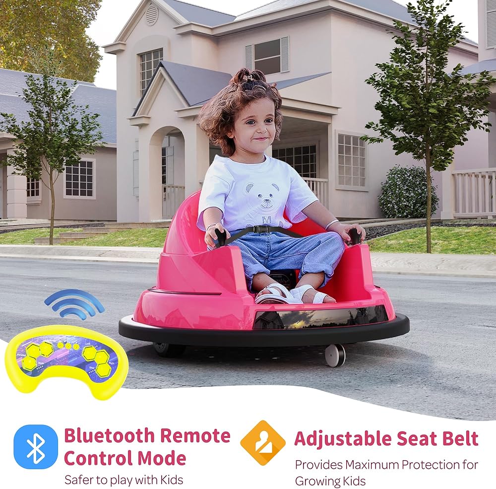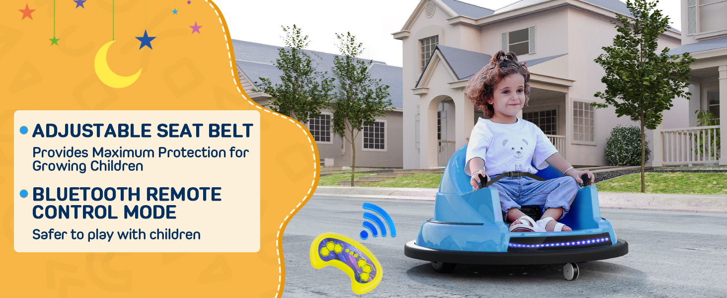 𝐒𝐚𝐟𝐞𝐭𝐲 𝐌𝐞𝐞𝐭𝐬 𝐃𝐮𝐫𝐚𝐛𝐢𝐥𝐢𝐭𝐲- Crafted from sturdy, non-toxic plastic, our electric bumper car comes with adjustable seat belts, puncture-proof tires, and cushioned rubber to soften bumps. The slow-start feature ensures every ride is smooth and under control.