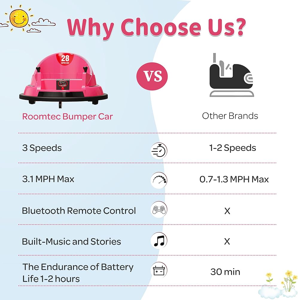𝐄𝐱𝐭𝐞𝐧𝐝𝐞𝐝 𝐏𝐥𝐚𝐲𝐭𝐢𝐦𝐞 - Unlike others with just one battery, our bumper car with 12V batteries (charger included), needing just 5 hours to charge (12 hours initially) for 2-4 hours of fun. So, you can enjoy even more happy moments every time you play.