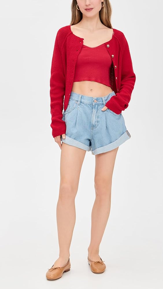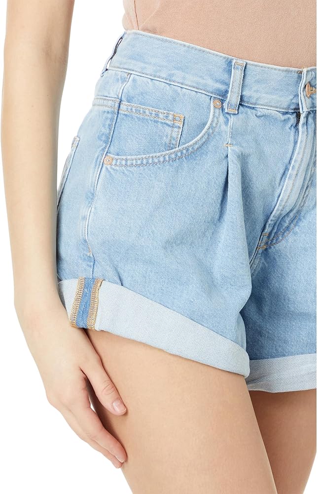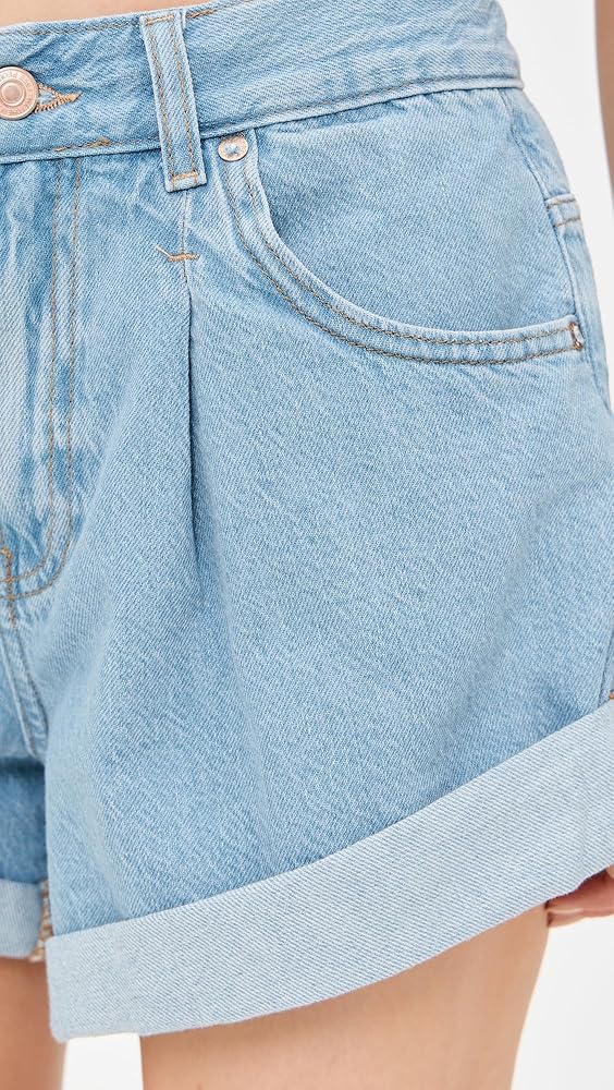 Perfectly pleated, these timeless denim shorts from our collection have the perfect touch of vintage-inspired charm. **Fit:** High-rise, relaxed tapered silhouette **Features:** Zip fly and button closure, five-pocket design, cuffed hemlines, rigid denim fabrication **Why We Love It:** Perfectly paired with a simple tee or elevated with a sheer blouse, these shorts have endless ways to wear.