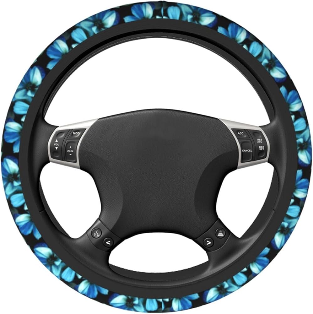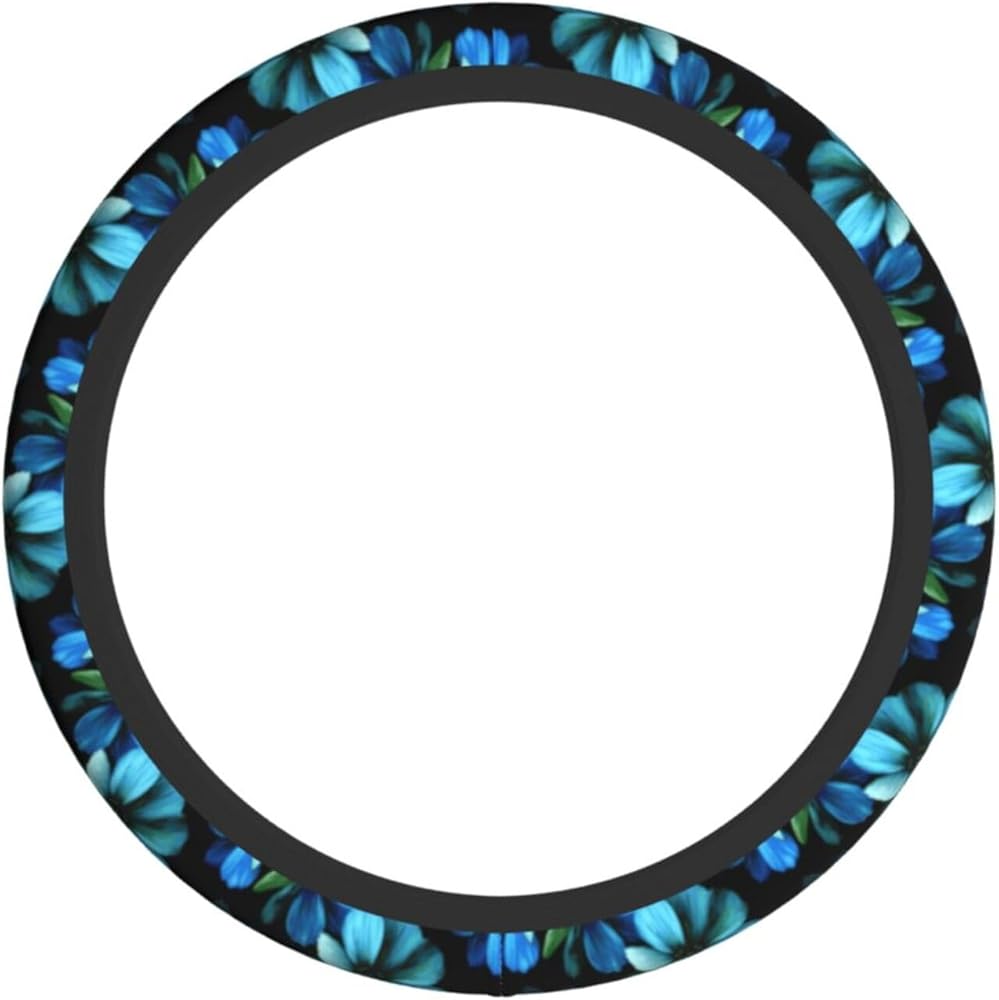 Blue Flower Steering Wheel Cover for Women Car Accessories Cute Girls Girly Universal 15 Inch Neoprene Auto Interior Decor Anti Slip Automotive Truck Protector