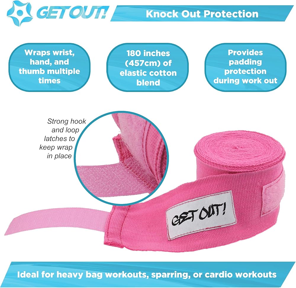 [Protect Your Hands while Exercising]: Get Out! Pink Boxing Hand Wraps are comfortable and secure to your hand during workouts; Boxing wrap 180-inch (457cm) set provides enough material to wrap around your wrist, hand, and thumb multiple times