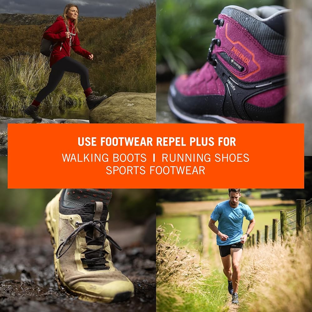 DURABLE REPELLENCY – Footwear Repel Plus offers all-in-one protection for all types of footwear. It is an easy-to-apply spray that restores the original durable waterproof repellency (DWR). This breathable, powerful spray-on waterproofer keeps boots, shoes and sneakers protected when outdoors or at work.