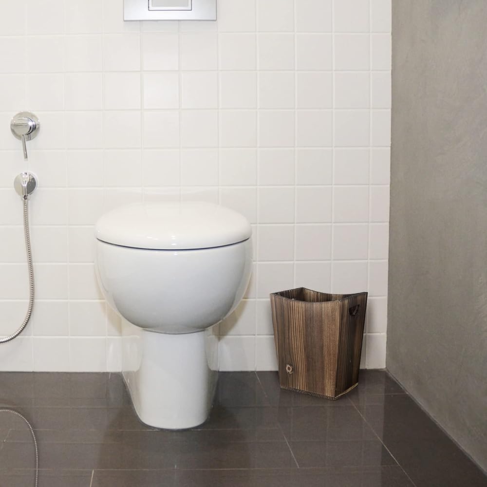 【STURDY & DECORATIVE】: Compared with the traditional plastic bin, the wood waste basket bathroom is sturdier. It can be used for a long time. Due to the perfect shape, it is used for home or office decoration, too.