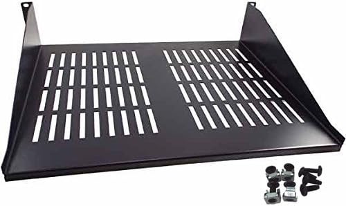 1U 11" depth vented rackmount equipment shelf designed for 19" rack mount widths. Lightweight, one-piece design allows for reliable and uniformly distributed support for networking devices, tools, documents, parts or other items. Constructed from steel and finished in durable Black electrostatic powder coating.