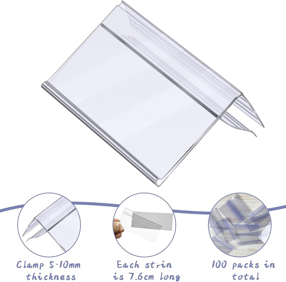 【Value Combination】You will receive 100pcs shelf label holder for clamping 3/16"-3/8" thick shelves or glass bars. Ample quantity to meet your daily life use and replacement, you can also share it to your family and friends.