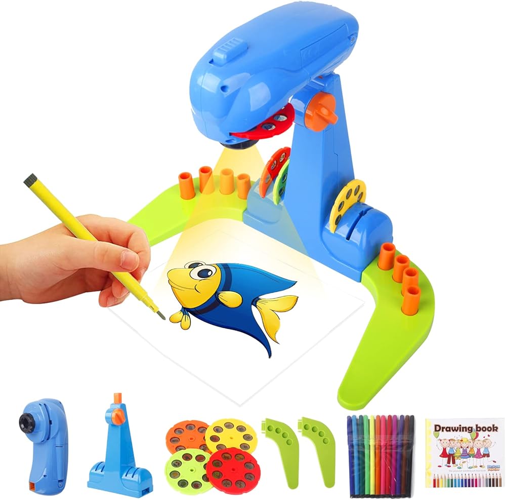 Projector Drawing for Kids,Smart Projector Draw Sketch Toy,with 32cartoon patters and 12color Brushes for Children Learn to Drawing and Sketch,Preschool Learning Activities
