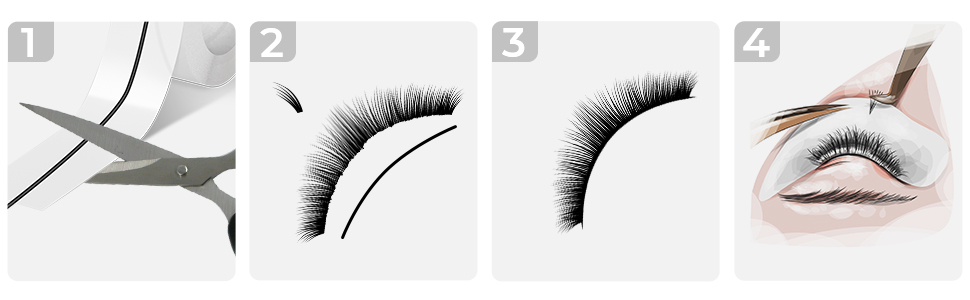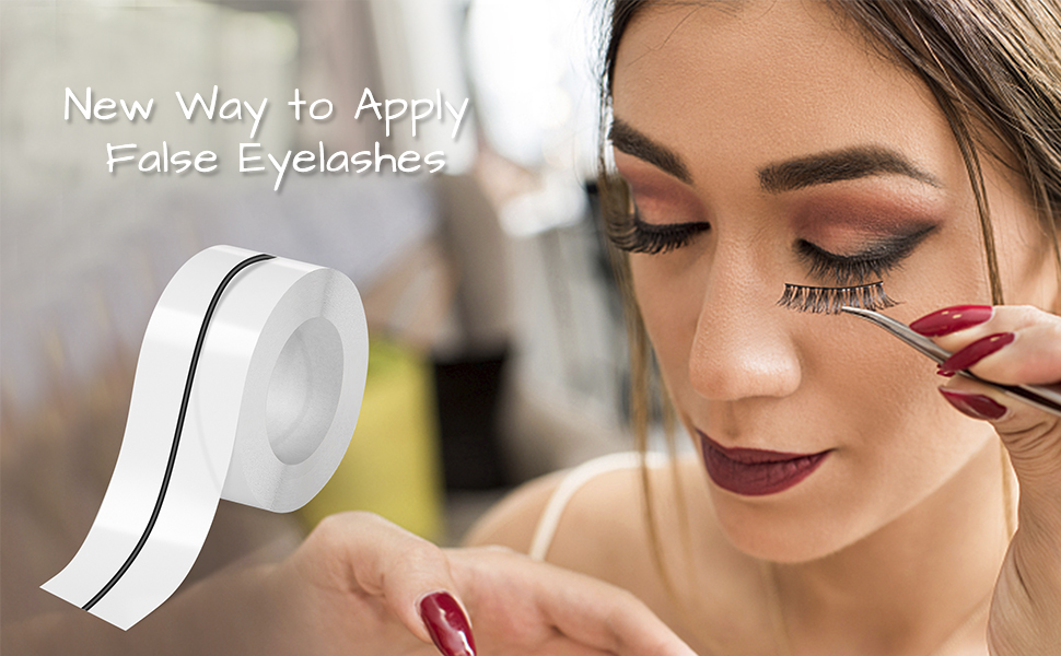 As you can see, this is a roll of self-adhesive tape with a length of 1 meter. For the basic method, you can use scissors to cut the self-adhesive strip to any size you want, then follow the curvature of the false eyelashes and stick the self-adhesive strip to the false eyelashes and you're done. For the advanced method, you can just pick up a roll of self-adhesive tape, apply it along your false eyelashes, and then cut it to save product, but you have to be careful about the conditions that may arise...