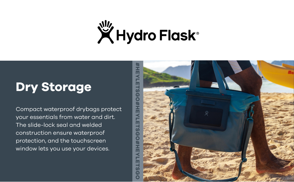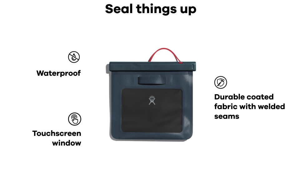 Protect your devices and more from sand, dust, and wet weather with the Hydro Flask Waterproof Dry Bag. They provide outdoor storage for your phone, pills, tablets, and more to stay sand-free at the beach or from rain water damage. Made from a durable coated fabric, the waterproof bag has welded seams to protect its contents. The Dry Storage locking technology slides to seal and guarantees waterproof protection. When you need to use your device, the touchscreen window will make it easy to access the internet without having to remove a thing. The waterproof phone pouch can fit perfectly in your hiking gear to keep your electronics safe and secured, or you can easily secure it to any compatible Hydro Flask gear with the attachment tab on the back. When you need a reliable waterproof pouch for your camping accessories, hiking gear, boating trips, or beach vacations, the Hydro Flask Dry Storage can protect your devices with secure assurance. This Hydro Flask product is backed by a manufacturer's lifetime warranty from manufacturer defects.