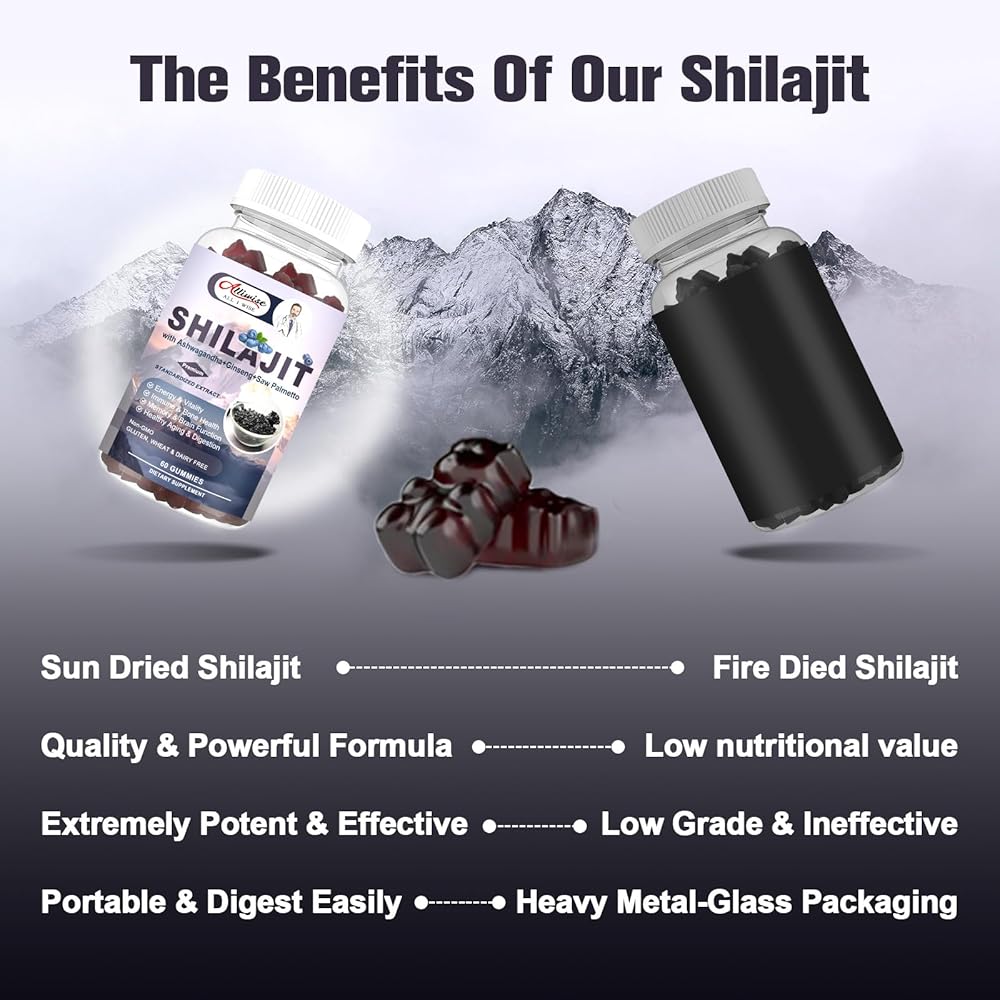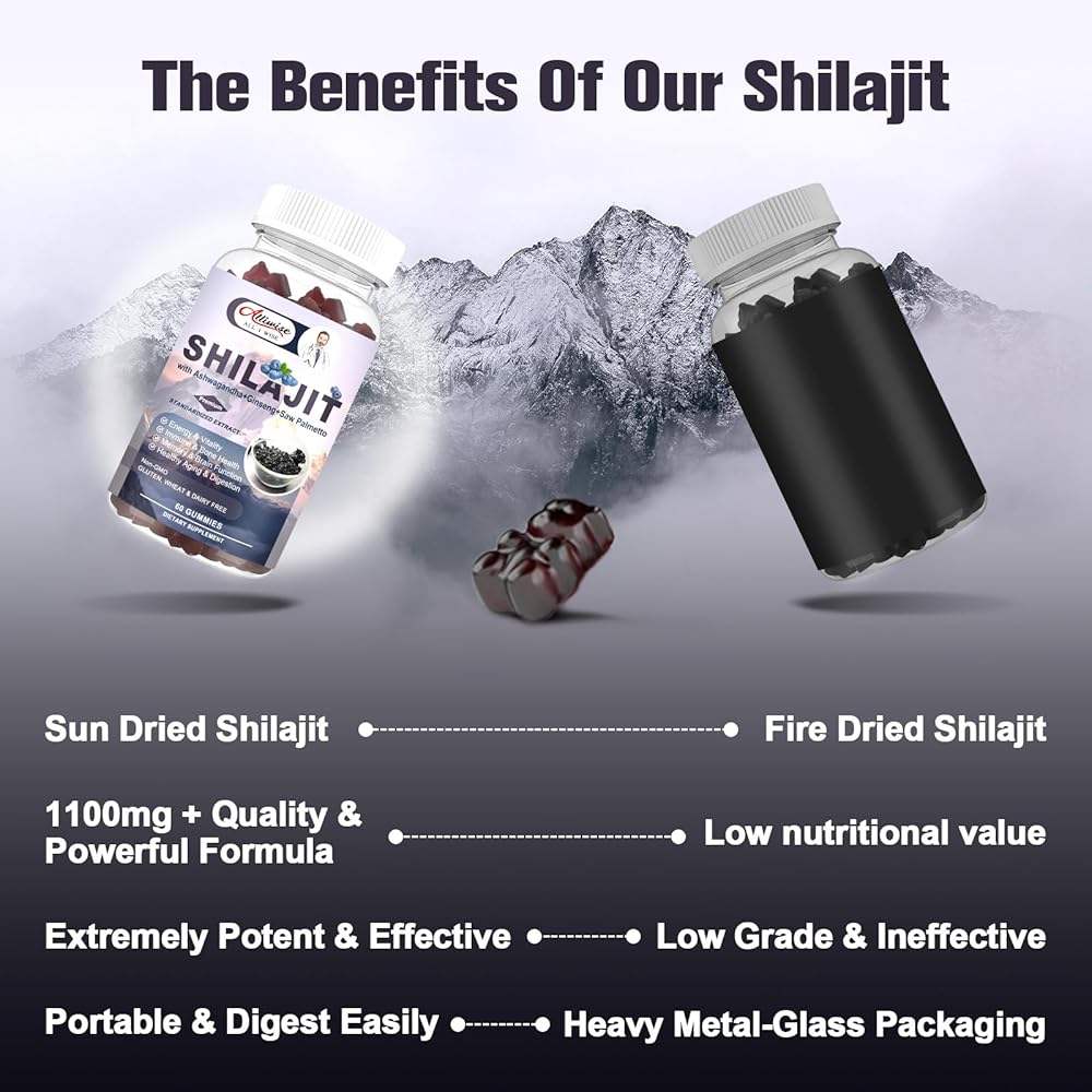 Shilajit Gummies for Men & Women, Shilajit Pure Himalayan Original Multi-Supplement, Shilajit Ashwagandha & High in Trace Minerals & Fulvic Acid for Energy, Strength & Immunity, 60 Serving