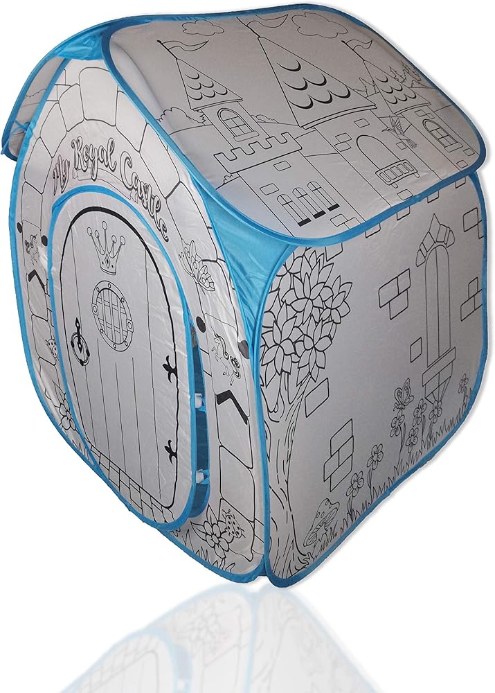 THAT COLOR YOUR OWN PLAYHOUSE TENT THAT IS GREAT AND SAFE FOR KIDS, TODDLERS, AND BABIES: This light yet sturdy tent is made with nontoxic, kid-friendly materials; this play house tent for girls and boys has CPSC kid-safety and quality certificates and Product Conforms to the ASTM D-4236 Requirement