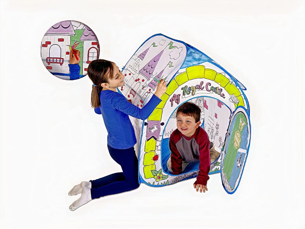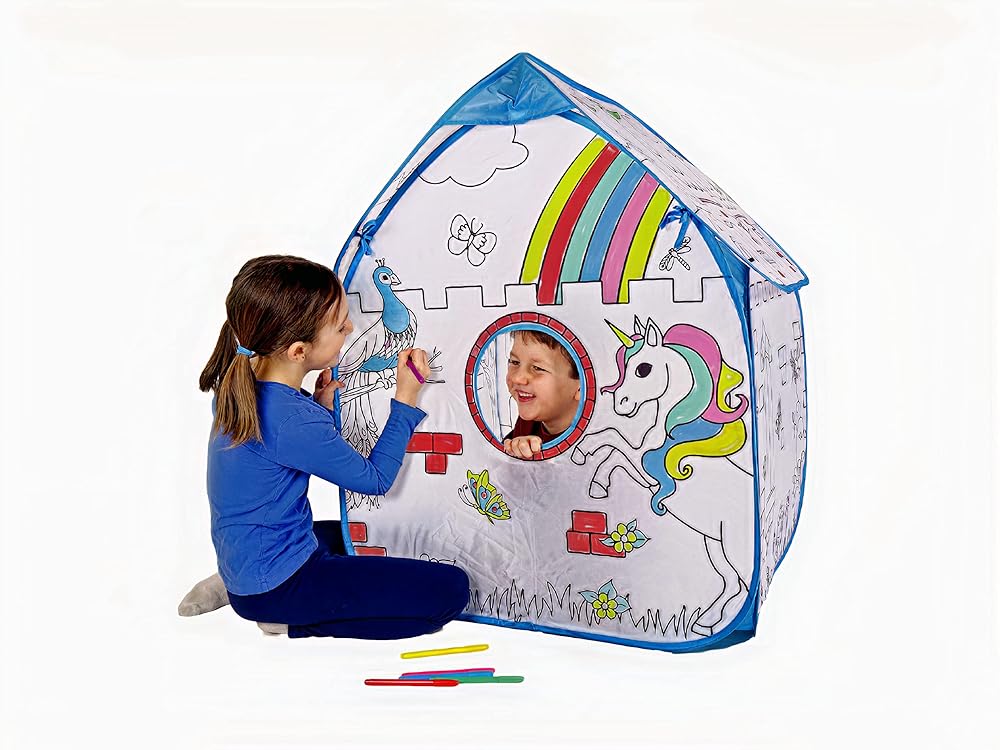 THE PLAYHOUSE THAT LETS YOU BRING YOUR IMAGINATION TO LIFE. - This kid's play tent does not require any assembly and sets itself right up, and gives you all the time to imagine the colors of your choice with the incuded color pens with washable ink.