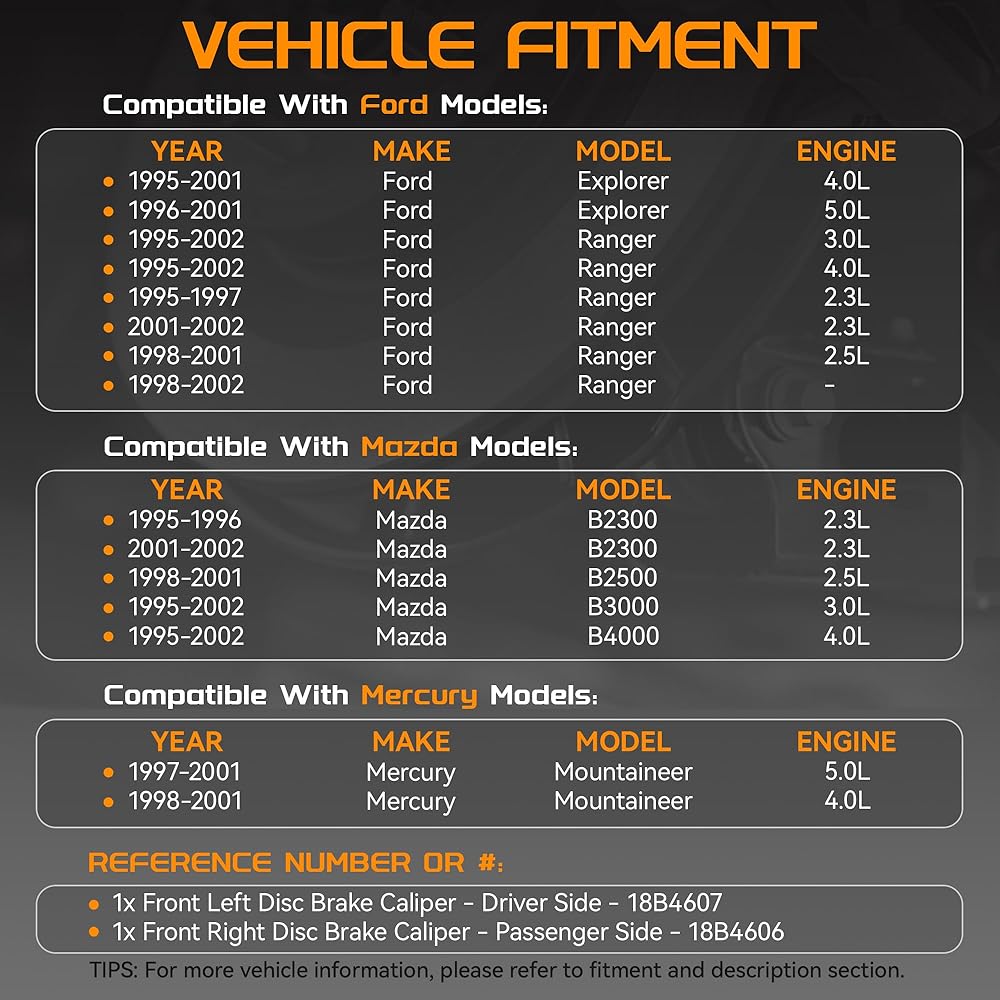 18B4606 18B4607 Front Brake Calipers Left & Right for 1995-2001 Ford Explorer 95-02 Ranger for 95-02 Mazda B2300 B2500 B3000 B4000 for 97-01 Mercury Mountaineer