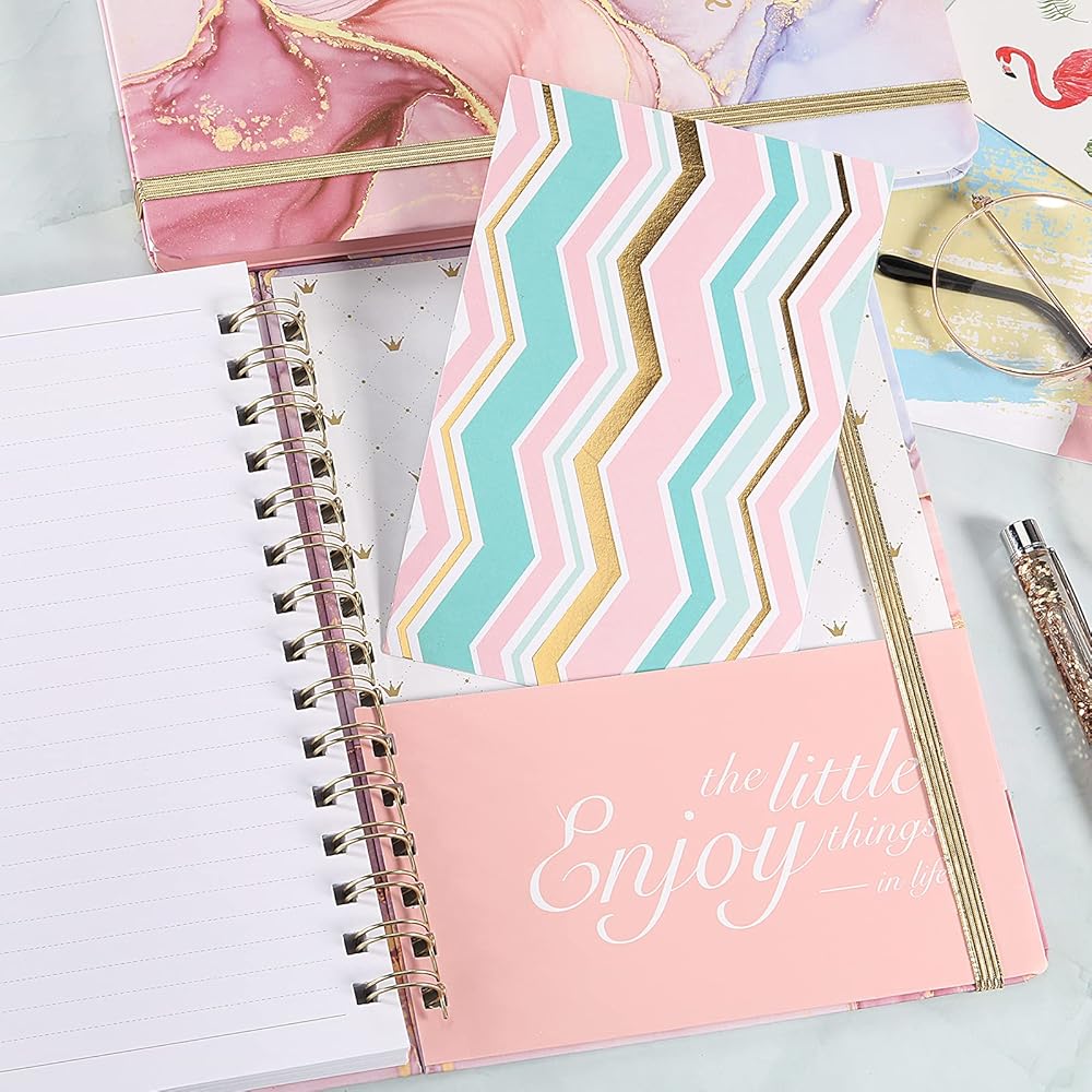 💓Other Details - This spiral notebook/journal with an elastic closure, it makes the notebook/ journal close firmly, it can also be used as a bookmark stuck in the place where you wrote last time. And an inner pocket on the last page, you can place some small cards, business cards.