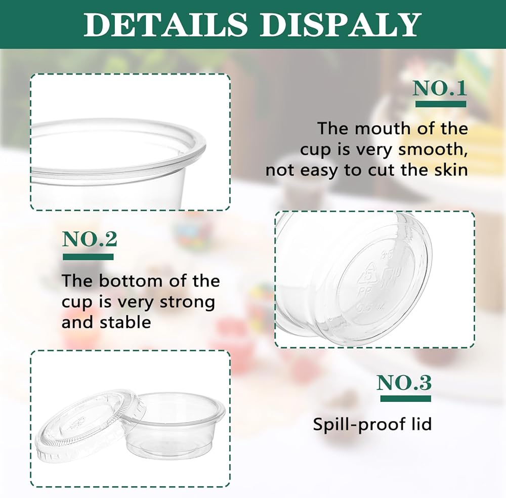 Our disposable serving cups are made of PP material and do not contain BPA. You don't have to worry about hidden dangers in holding food. They have good sealing performance, are flexible and reliable, and have restaurant quality.