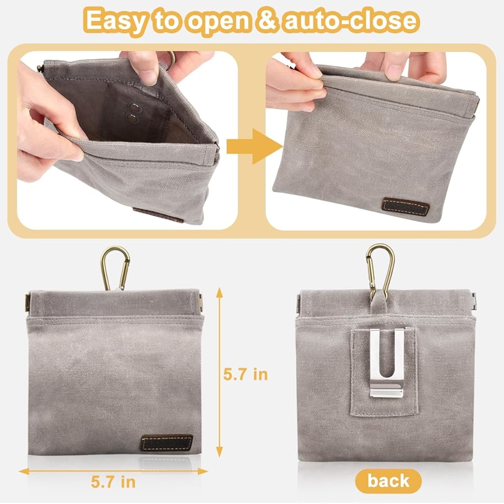 Dog Treat Bag with Waist Clip,Dog Treat Pouch,Portable Outdoor Training Dog Walking Snack Bag,Pet Feeding Pocket for Leash with Auto-Closing Opening (Grey)
