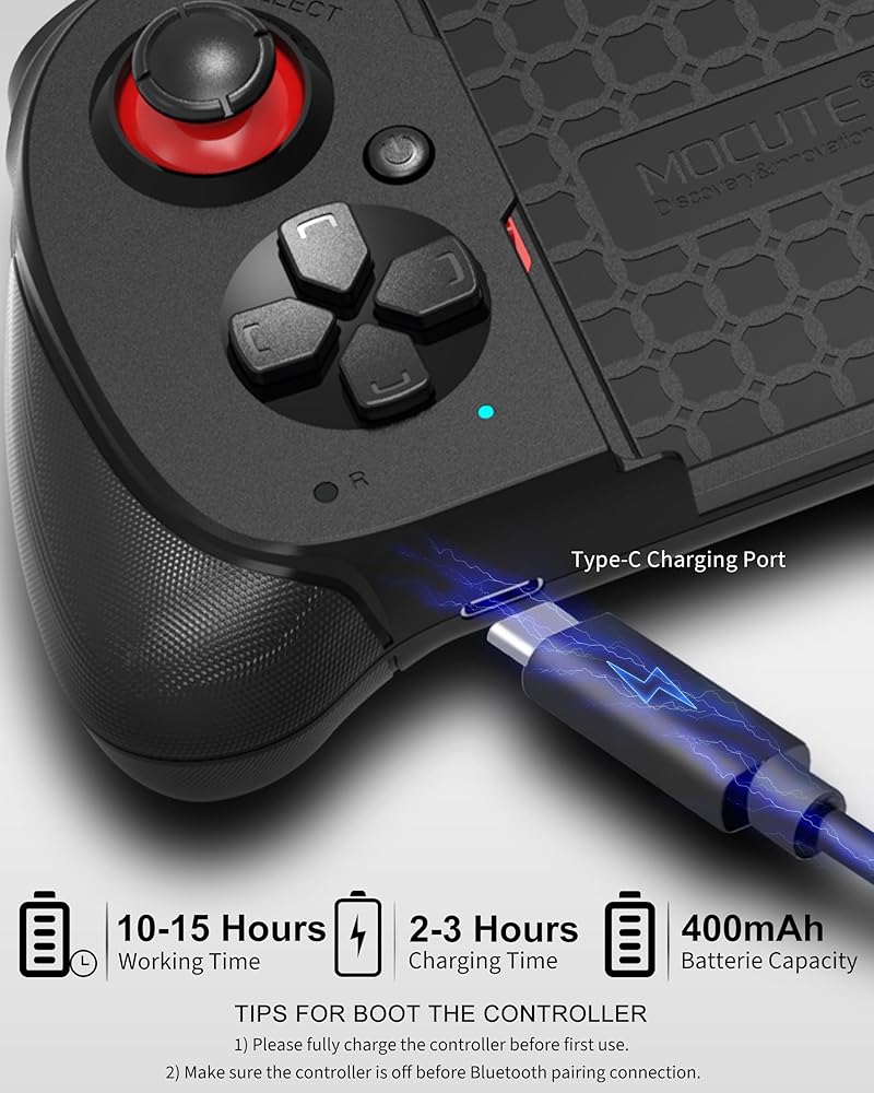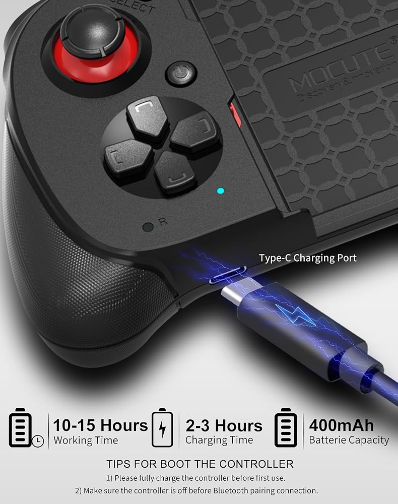 🥰 🎮【Use Note】1) Please fully charge the controller before first use. 2) Make sure the controller is off before Bluetooth pairing connection.