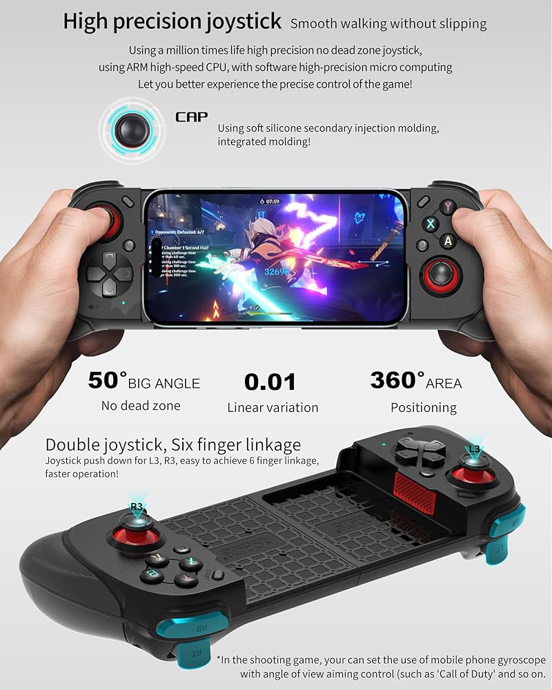 🔋🎮【Long Lasting Gaming Time】 The mobile phone controller comes with 400mAh rechargeable battery ensures uninterrupted gaming sessions, so you can enjoy more than 15 hours of immersive gameplay.