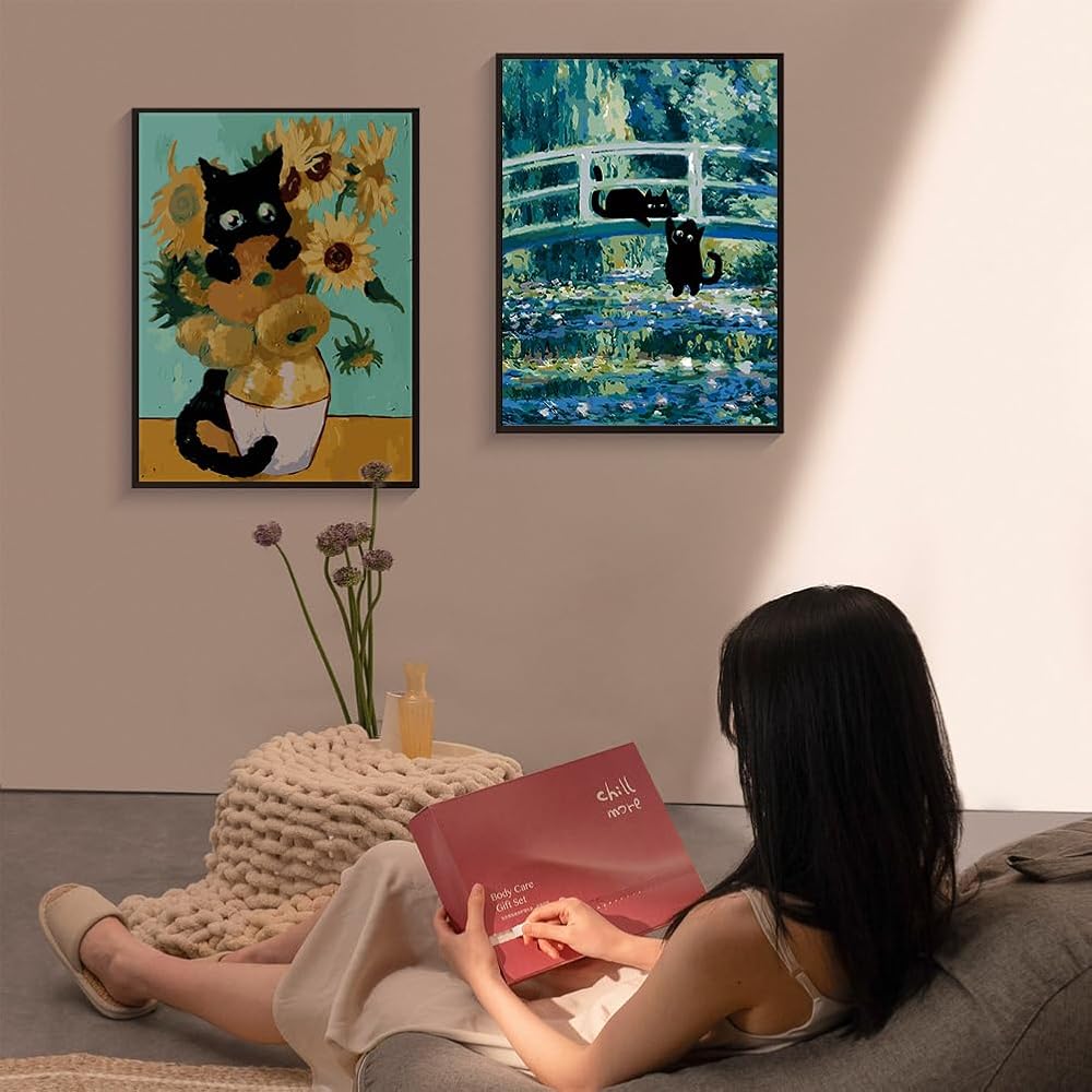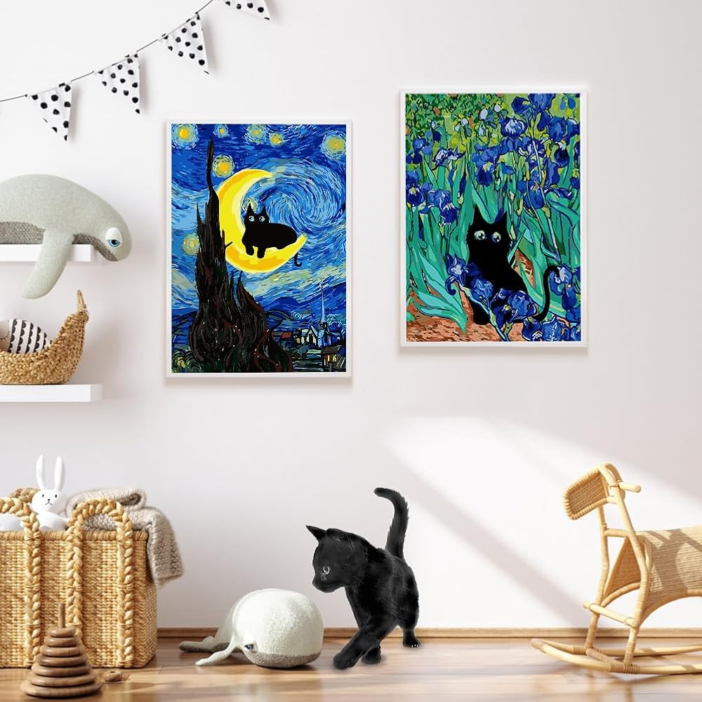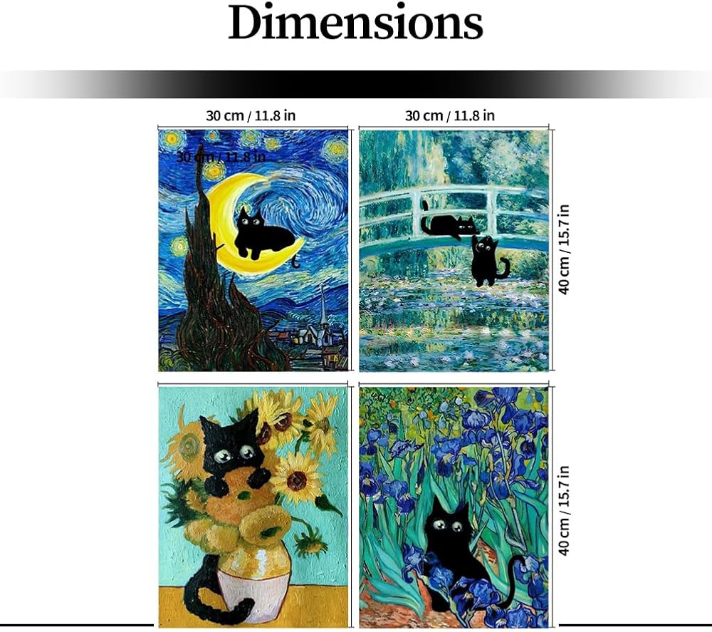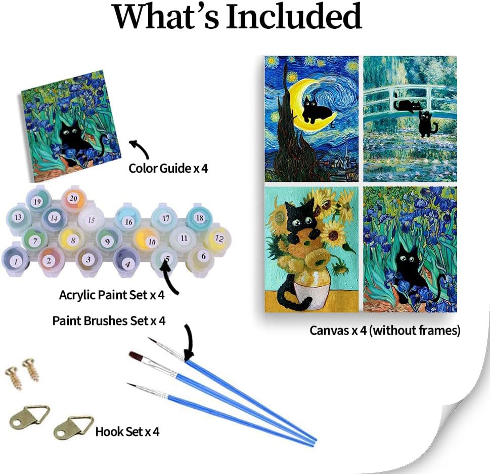 SupaDiya 4 Packs DIY Paint by Numbers Kits for Adults Beginners, Black Cats Vintage Art Easy Acrylic Watercolors Oil Number Painting Art on Canvas for Home Wall Decor and Gift (12x16 inches)