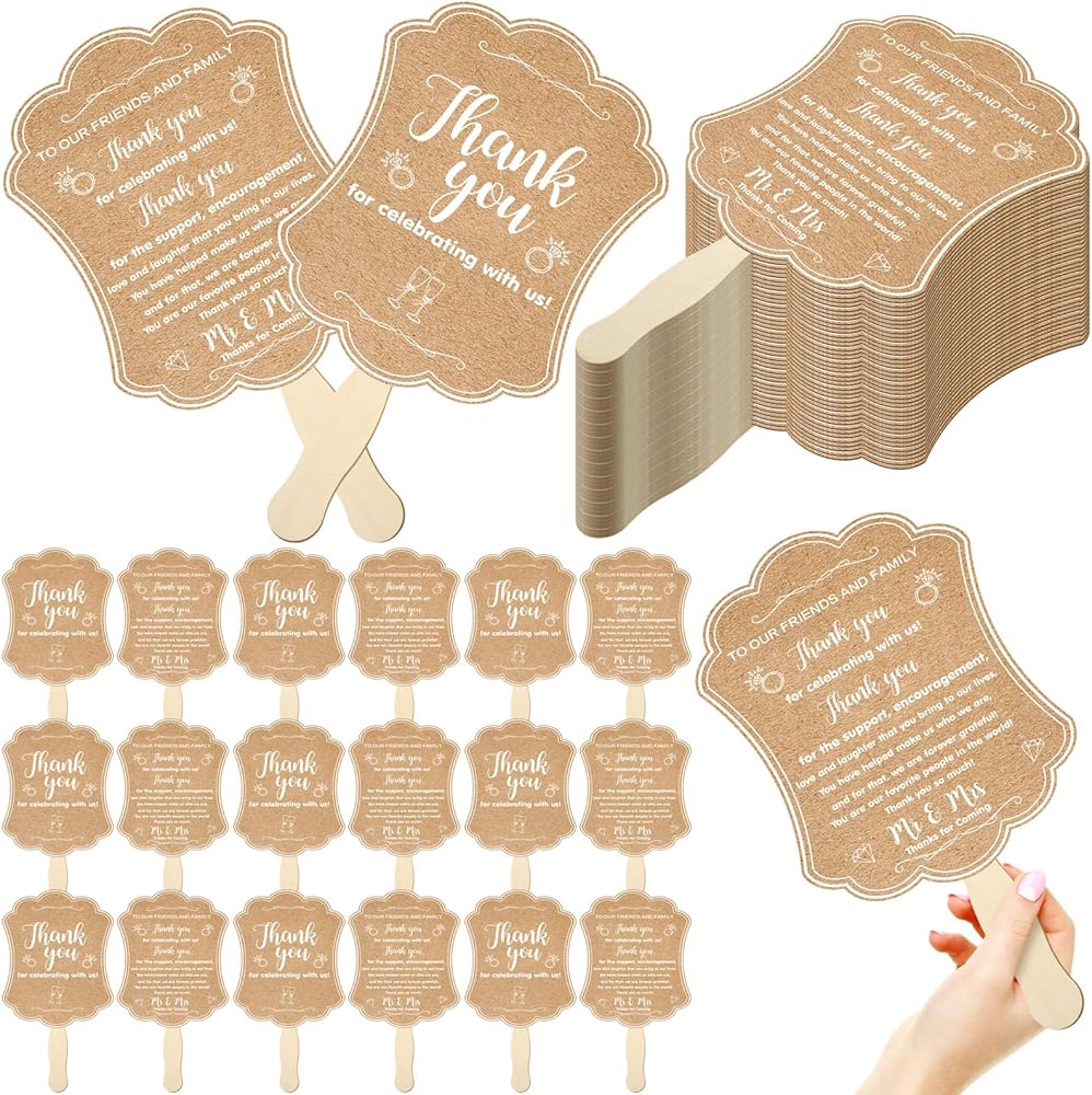Bundle Package: each package includes 50 beautifully designed kraft paper fans with wooden handle hand, this large quantity ensures that each of your guests can enjoy the thoughtfully provided comfort, reflecting your appreciation for their presence in celebrating your special day