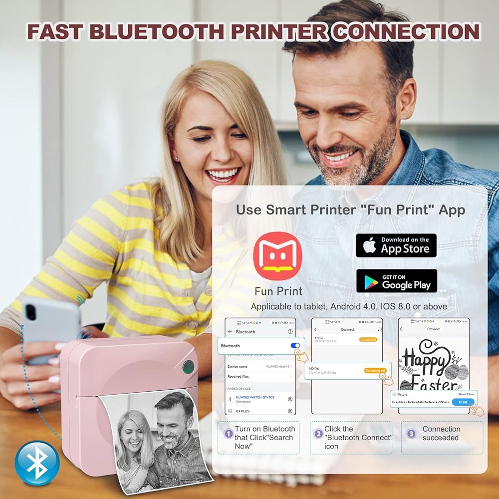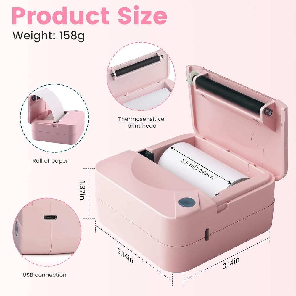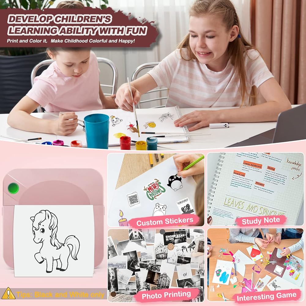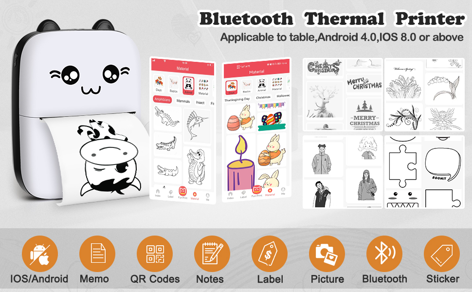🎁【Multifunctional Pocket Printer & Ideal Gift】"Fun print" APP is for users .The APP offers hundreds of free templates and graphics.Inkless pocket printer is used to print black and white pictures/photos,memo,shopping lists,study/meeting notes,business, work plan, office assistant, shopping list,labels, messages, lists, web pages, QR codes, records,etc. Also a best gifts for kids on festivals/Christmas/New Year/Birthday.