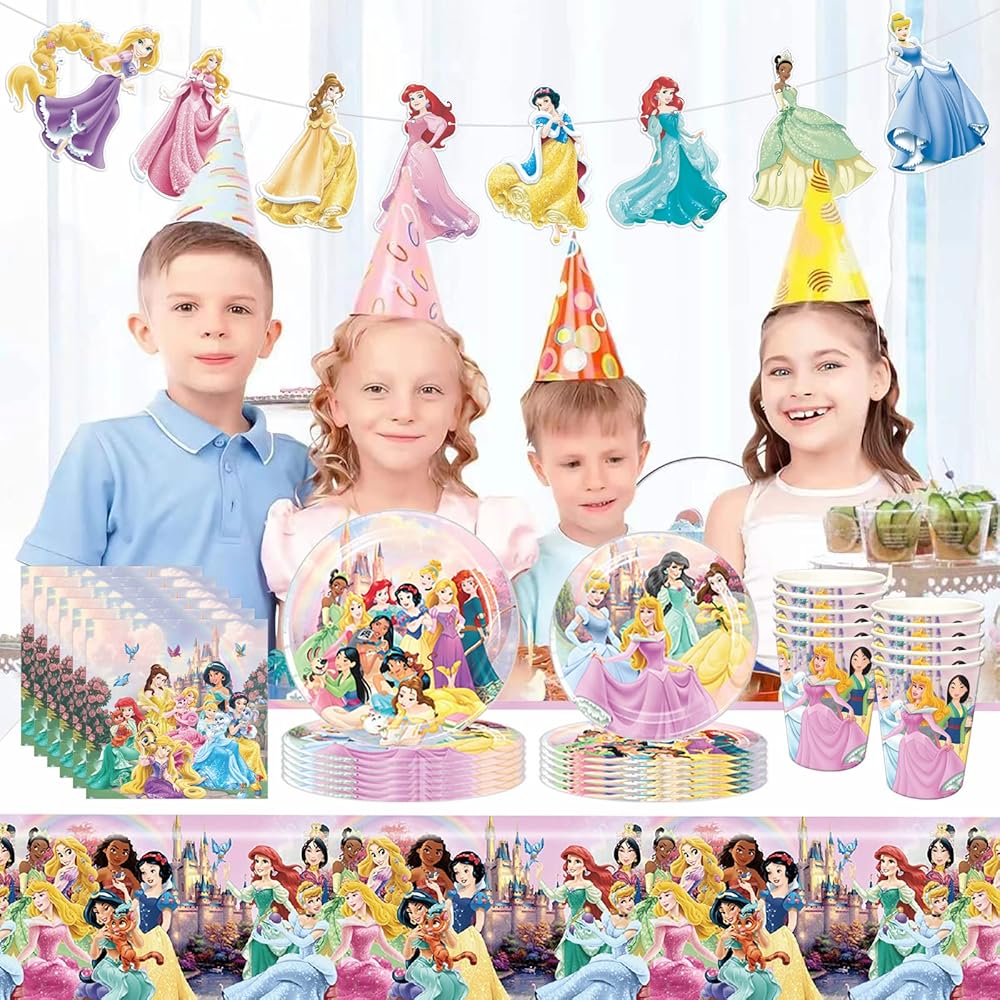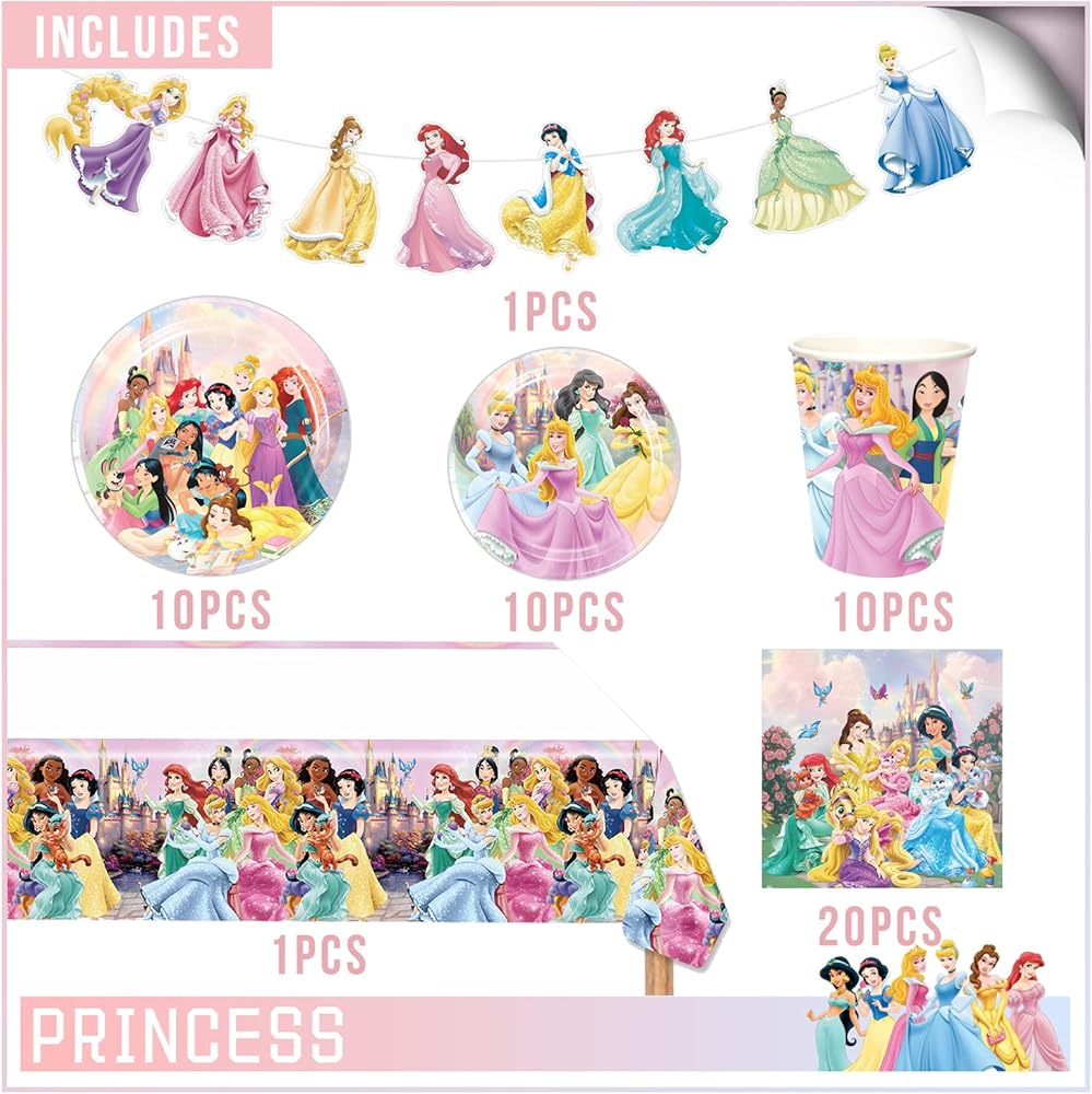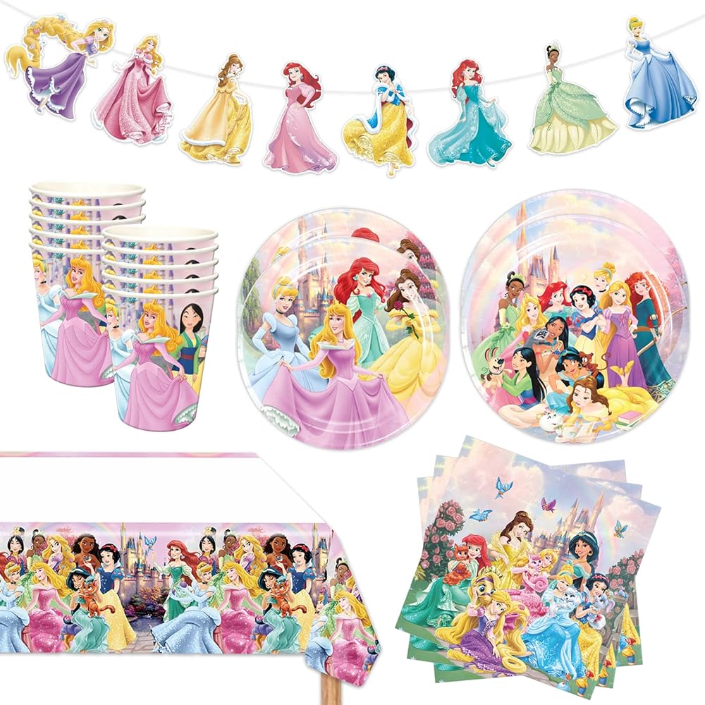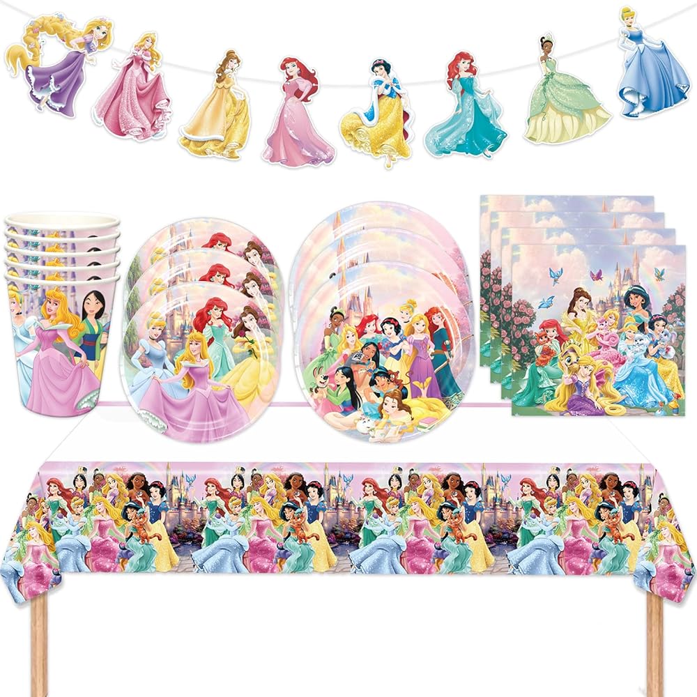 Princess Birthday Party Supplies, Princess Party Decorations include Princess Tableware, Tablecloth ,Banner for Girls Princess Party Gift, Princess Birthday Supplies for Party