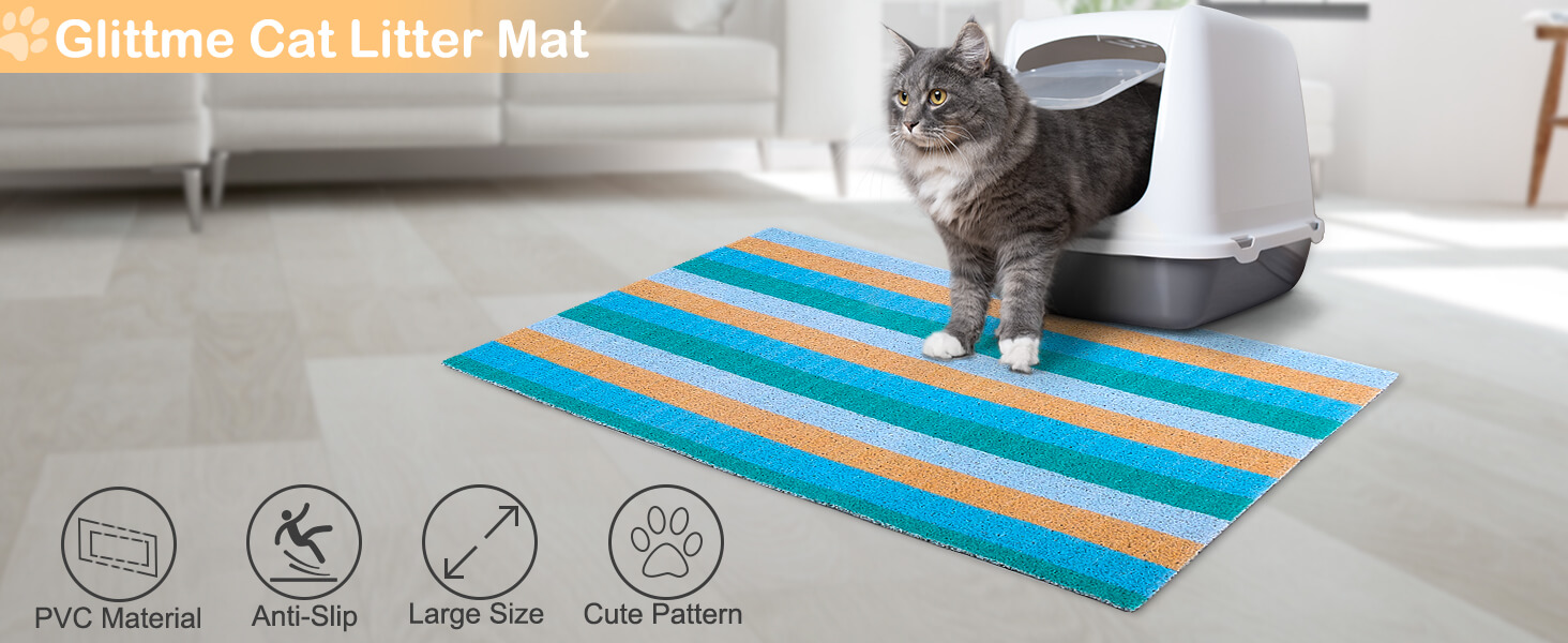 【حافظ على نظافة الأرضية】حصيرة فضلات القطط من جليتم مصنوعة من مادة البولي فينيل كلوريد وتصميم شبكي، يمكنها جمع فضلات القطط المتساقطة بشكل فعال والتأكد من أن الأرضية لن تتسخ، مما يجعل تربية الحيوانات الأليفة أسهل وأكثر متعة.