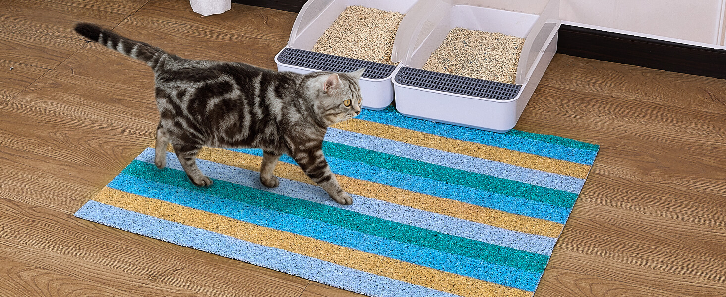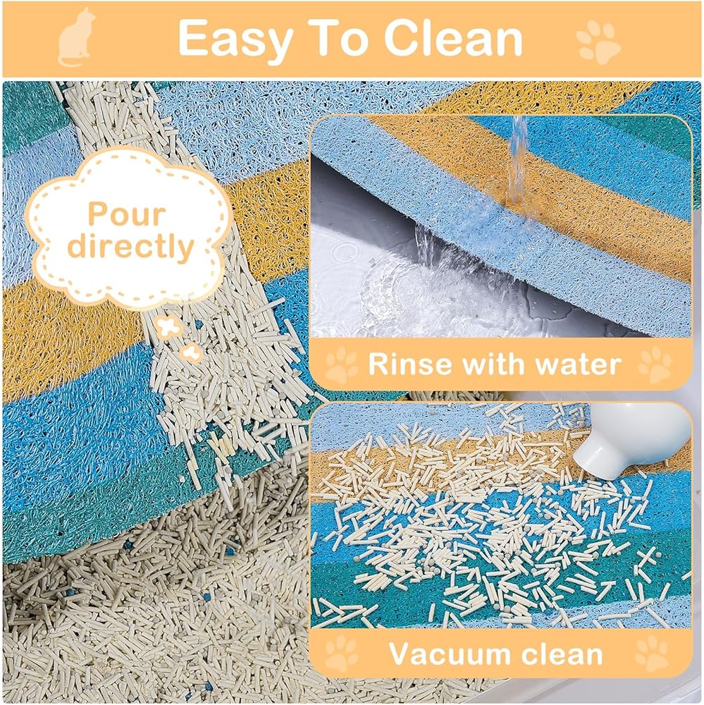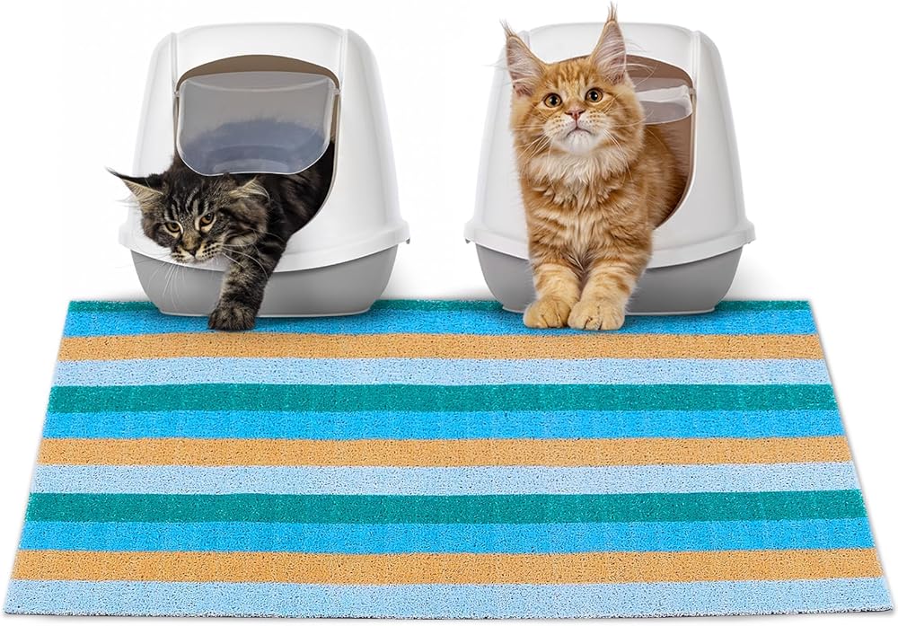 【حصيرة فضلات القطط】تحتوي سجادة فضلات القطط لدينا على 3 أنماط للاختيار منها، خطوط برتقالية خضراء، خطوط زرقاء وردية وخطوط زرقاء حمراء. إذا كانت لديك أي أسئلة أثناء استخدام منتجاتنا، يمكنك الاتصال بنا في أي وقت، وسوف نقدم لك ضمان ما بعد البيع.