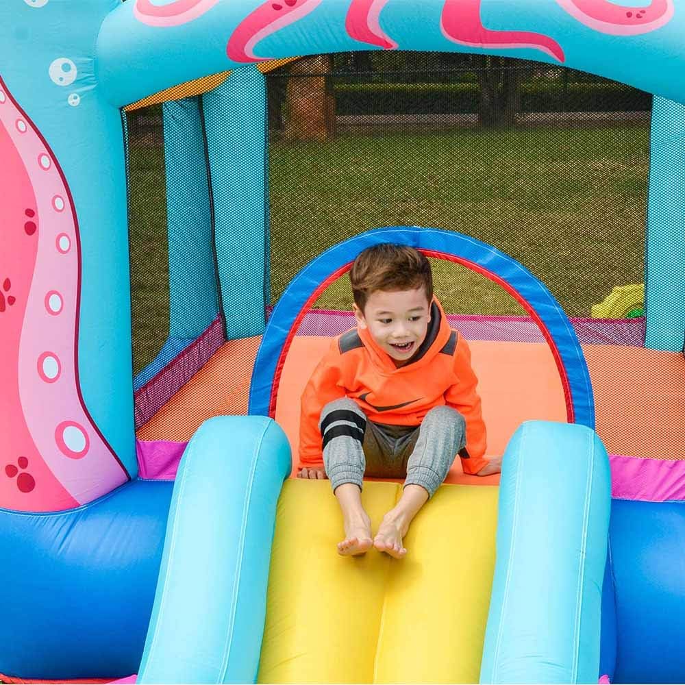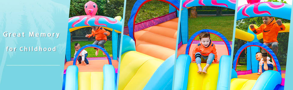A Inflatable bouncy house slide would be a great idea! Young kids are so active and they love jumping and climbing which have lots of fun and much helpful to children's growth and health. Safety design and high quality would create special memories for your children's childhood. Just place the bouncer in your room or yard and let your sweet heart jump freely.
