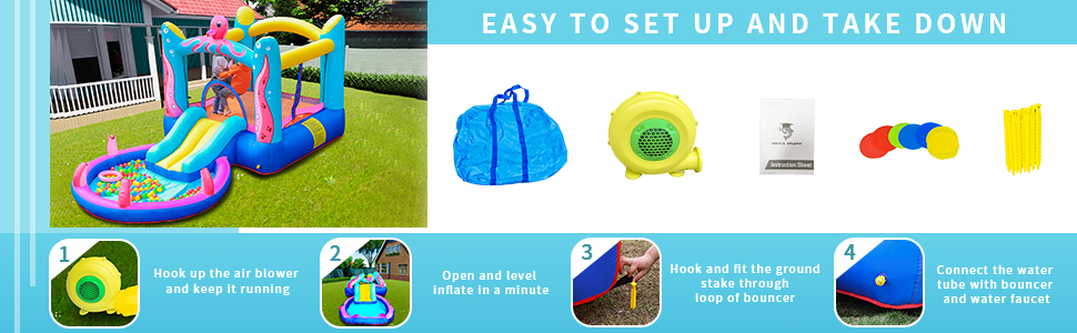 ★ Easy installation and quick setup the water slide about 2-3 minutes with heavy duty grade blower.