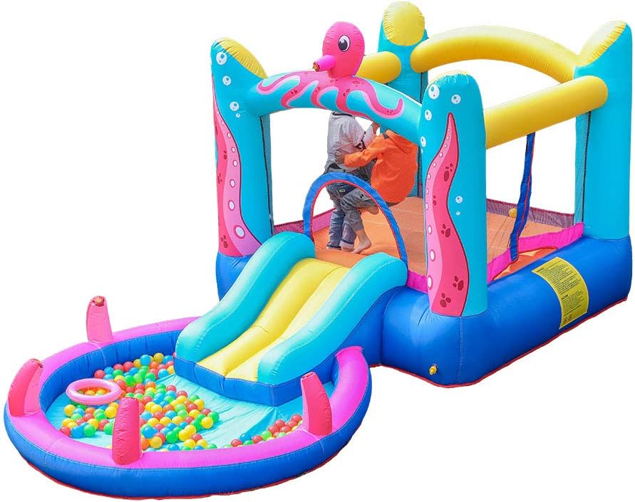 ★ The basketball hoop inside can allow the kids to have shooting game and play in the ball pool together in the bouncer