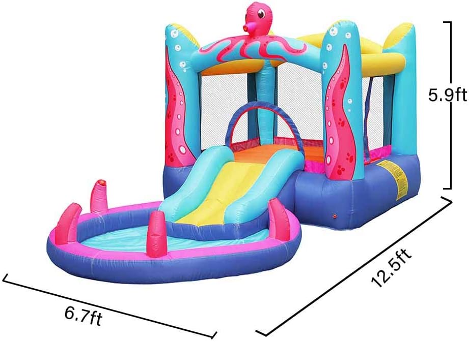 ★ The inflatable Bouncy house is built of puncture-resistant 420D nylon and tarpaulin material which is durable and lab-tested to ensure safety and compliance with the Lead-Free Toys