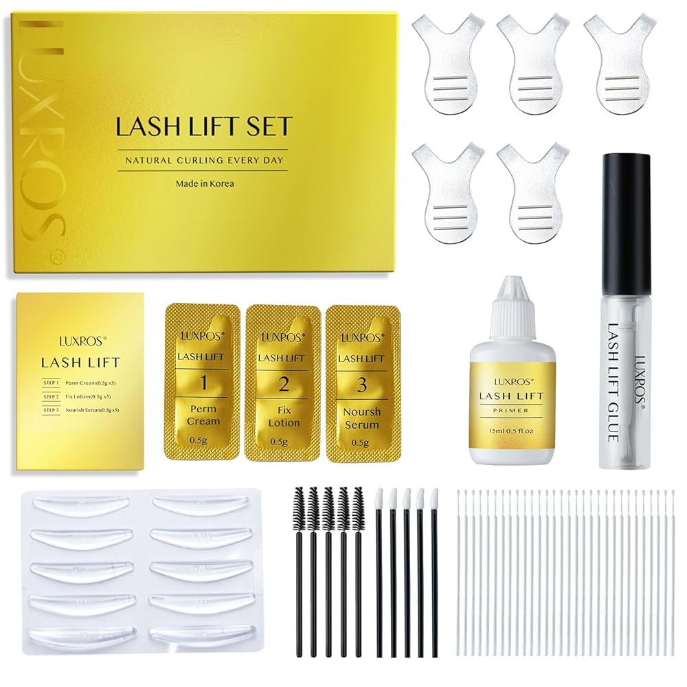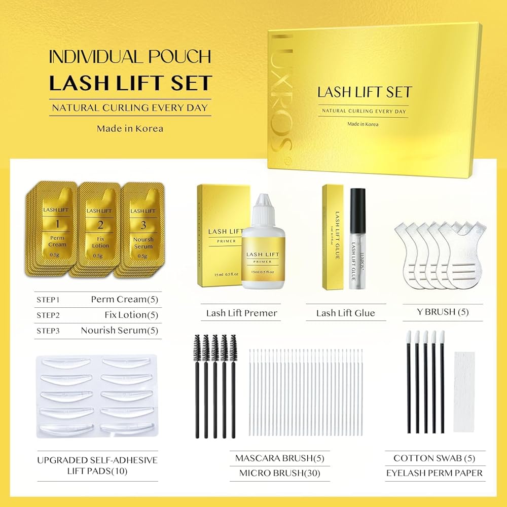 Korean Lash Lift Kit for Eyelash Perm: 5 Applications, Thio-Free Keratin Formula for Long-Lasting Curl – Gentle Lash Lifting Set for Home or Professional Use – Also Great for Brow Lamination