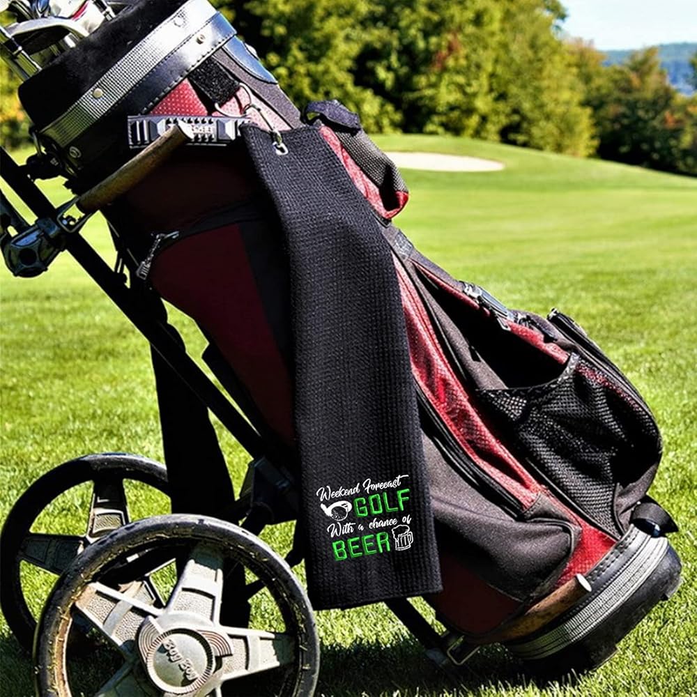 Exquisite Craftsmanship: The golf towel is printed with exquisite embroidery of Weekend Forecast Golf With a chance of Beer, adding a fun artistic atmosphere to your golf activities.
