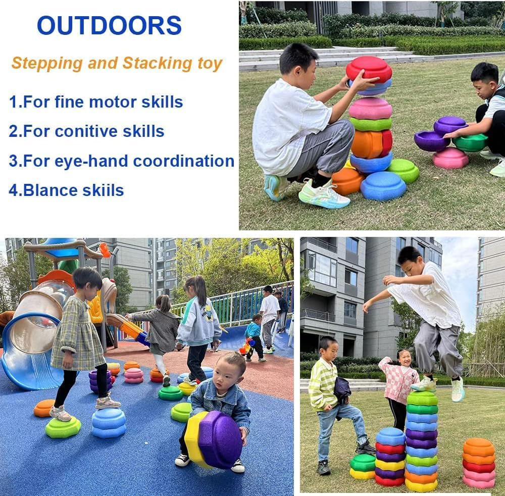 Balance Stepping Stones for Kids and Also a Stacking Blocks Toy, Balance River Stones for Promoting Children's Coordination Skills Obstacle Courses Sensory Toys for Toddlers