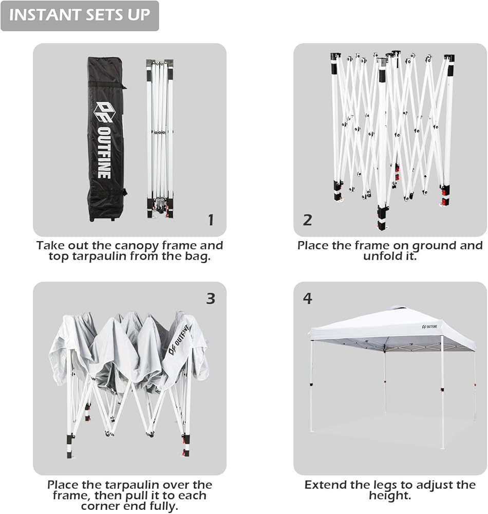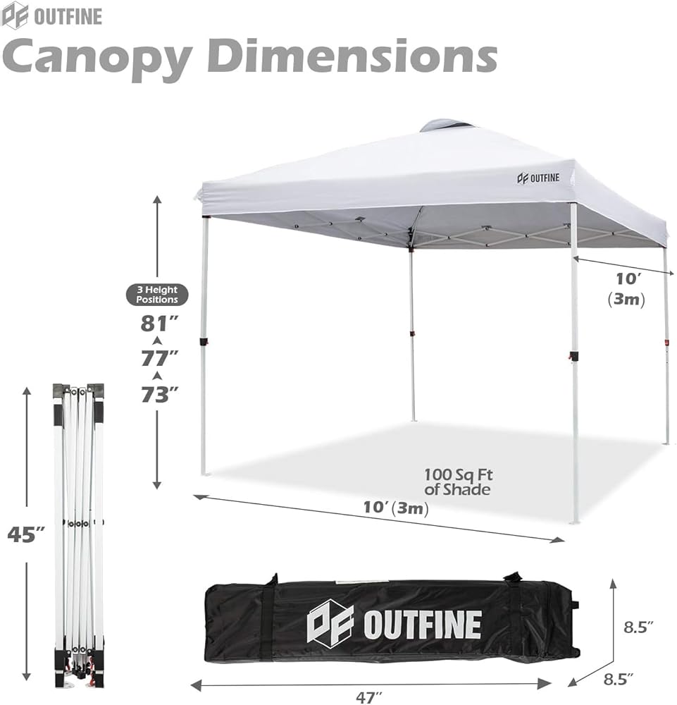 EASY TO ASSEMBLE - Only two people are required to easily complete the entire assembly in a few minutes. Take out the canopy frame and top tarpaulin from the bag, place it on ground and unfold it, place the tarpaulin over the frame, then pull it to each corner end fully and extend the legs and it is done. Three different height settings allow you to pick the height which you want, 73 inch, 77 inch and 81 inch. Thumb latch lock system easy to lock and release.