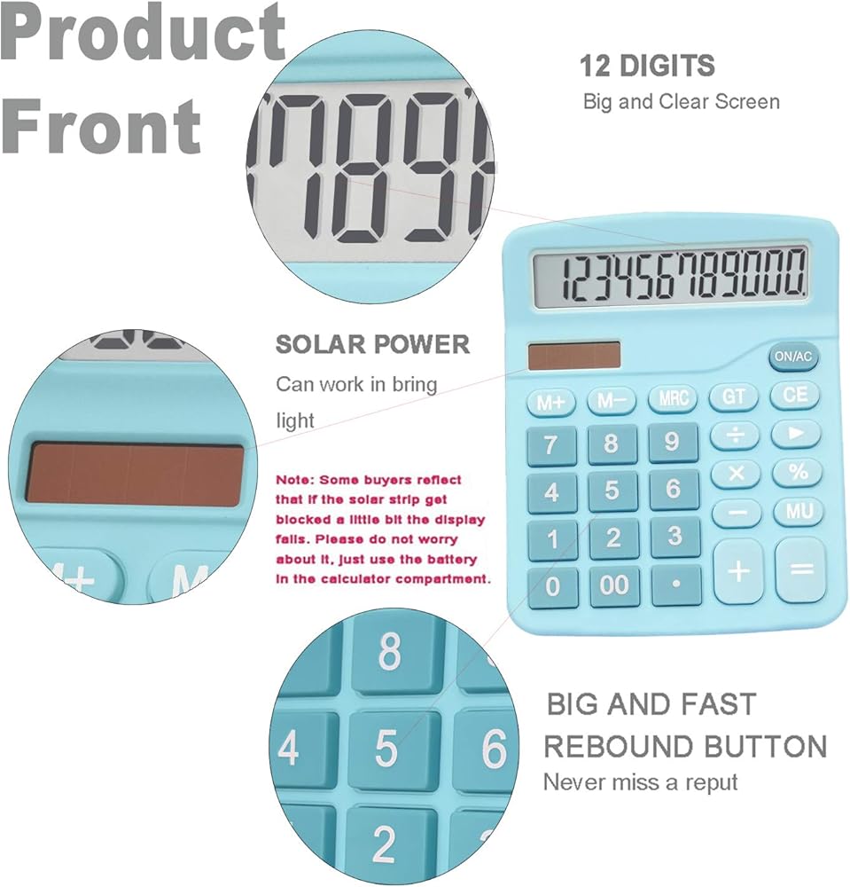 Calculators Large Display - 12 digits display and large numbers , easy to read. Big and sensitive keys for simple calculations, perfect for office, primary school, market or home use