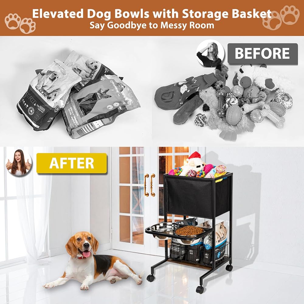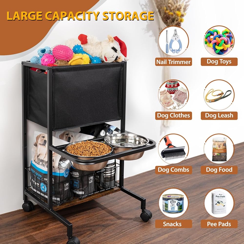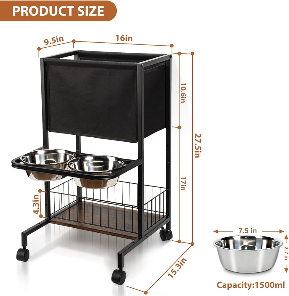 【Mobility with Ease】: Designed with convenient wheels, our raised dog bowl stand can be effortlessly moved even when fully loaded. Adjusting the feeder's position for cleaning or rearranging space has never been simpler, thanks to the wheel design.
