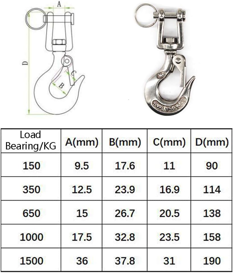Load Bearing:1000KG Package Content : 1 x Swivel Eye Hook(More dimention information please refer to the picutre.)