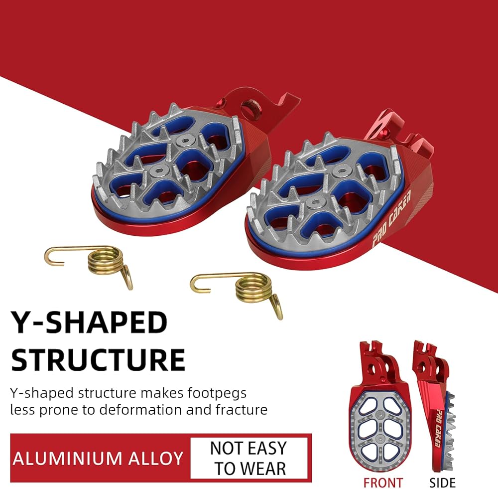 【Wider and Bigger】 It is wider and larger than the original dirt bike foot pegs to provide better friction and control, allowing your feet to stay in place without sliding; the wider platform disperses the impact and reduces the pressure on your feet.