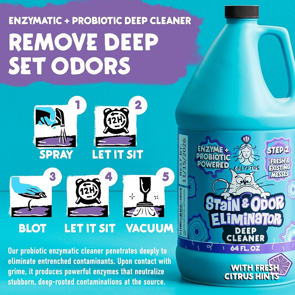 PROBIOTICS CHANGE EVERYTHING: Traditional enzyme cleaners work, sorta, but they're old news. High-density probiotic cleaners keep on producing highly targeted, protein-specific enzymes until odor-causing matter is eliminated deep at the source, for a far superior pet stain and odor remover and best-in-class pet urine enzyme cleaner system.