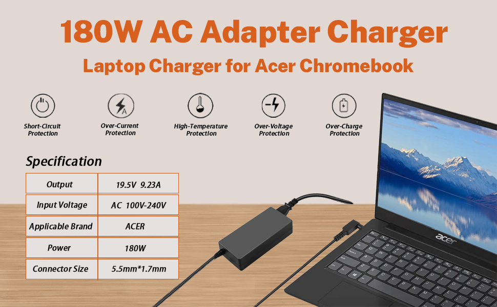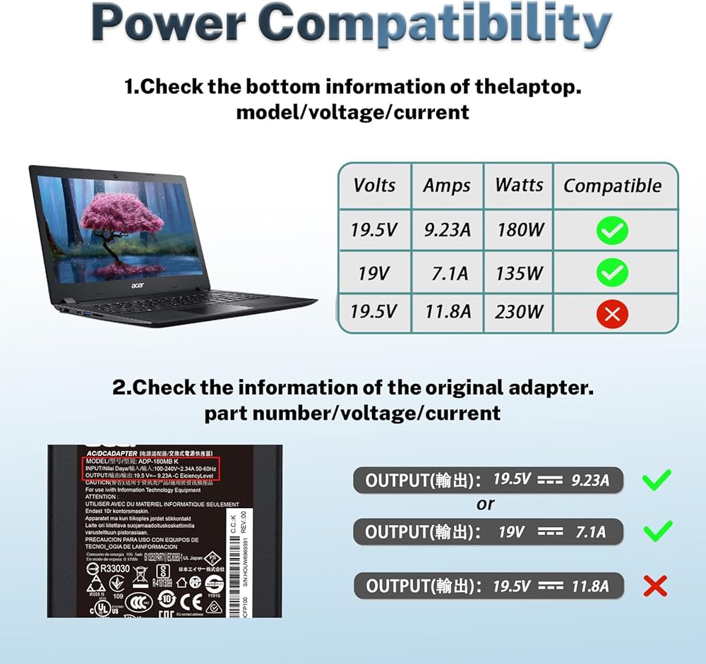 Replacement for Acer Aspire Nitro 5 (Nitro V): AN515-41, AN515-42, AN515-42-R5GT, AN515-43, AN515-44-R99Q, AN515-51, AN515-51-55WL Laptop Power Adapter.