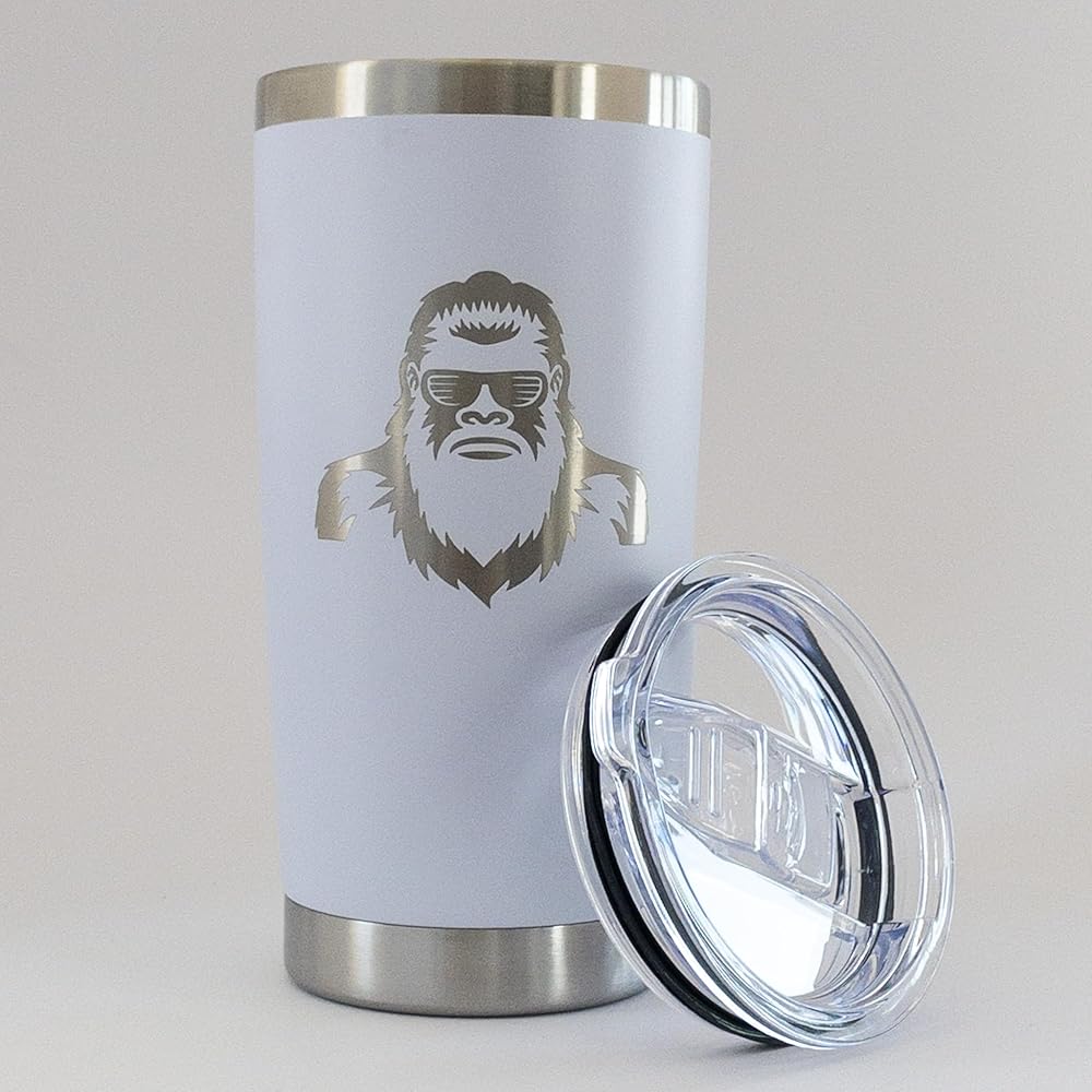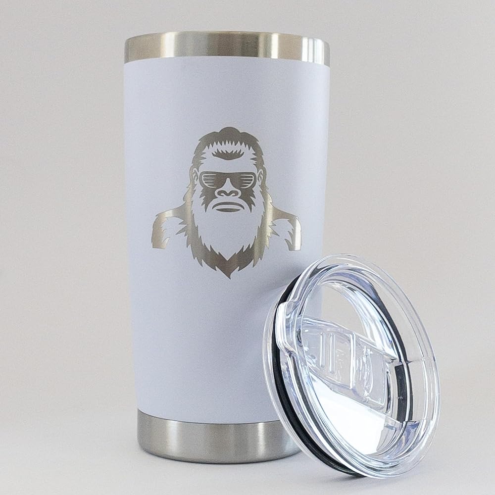 20oz Stainless Steel Coffee tumbler with engraved design that does not fade or wash away.
