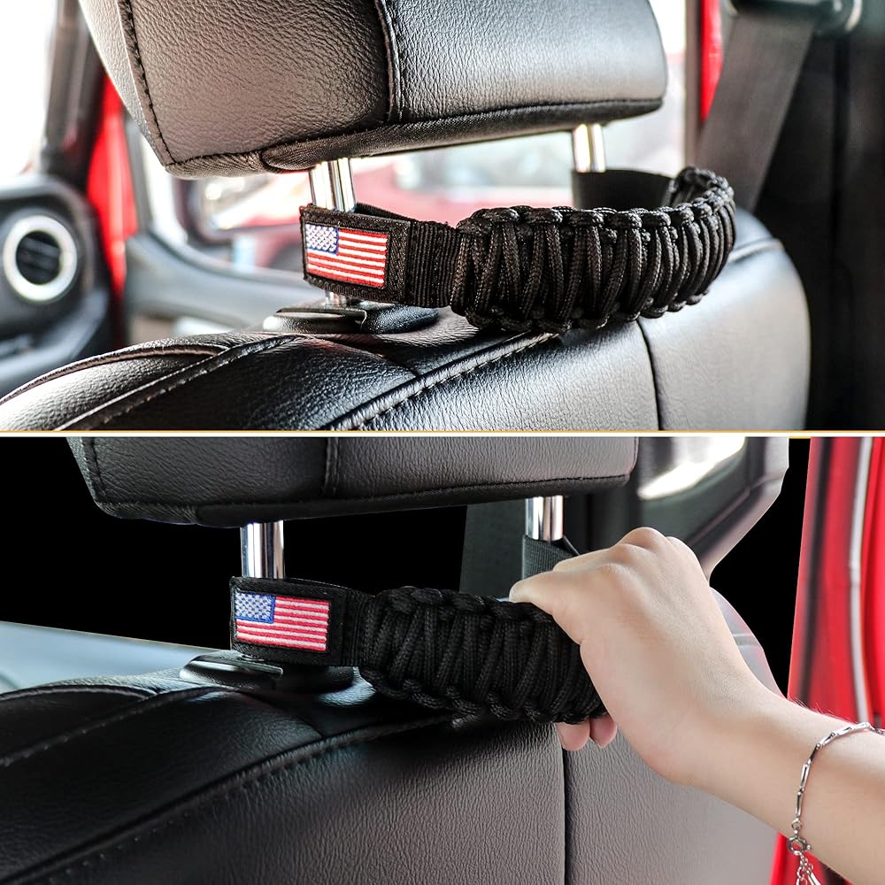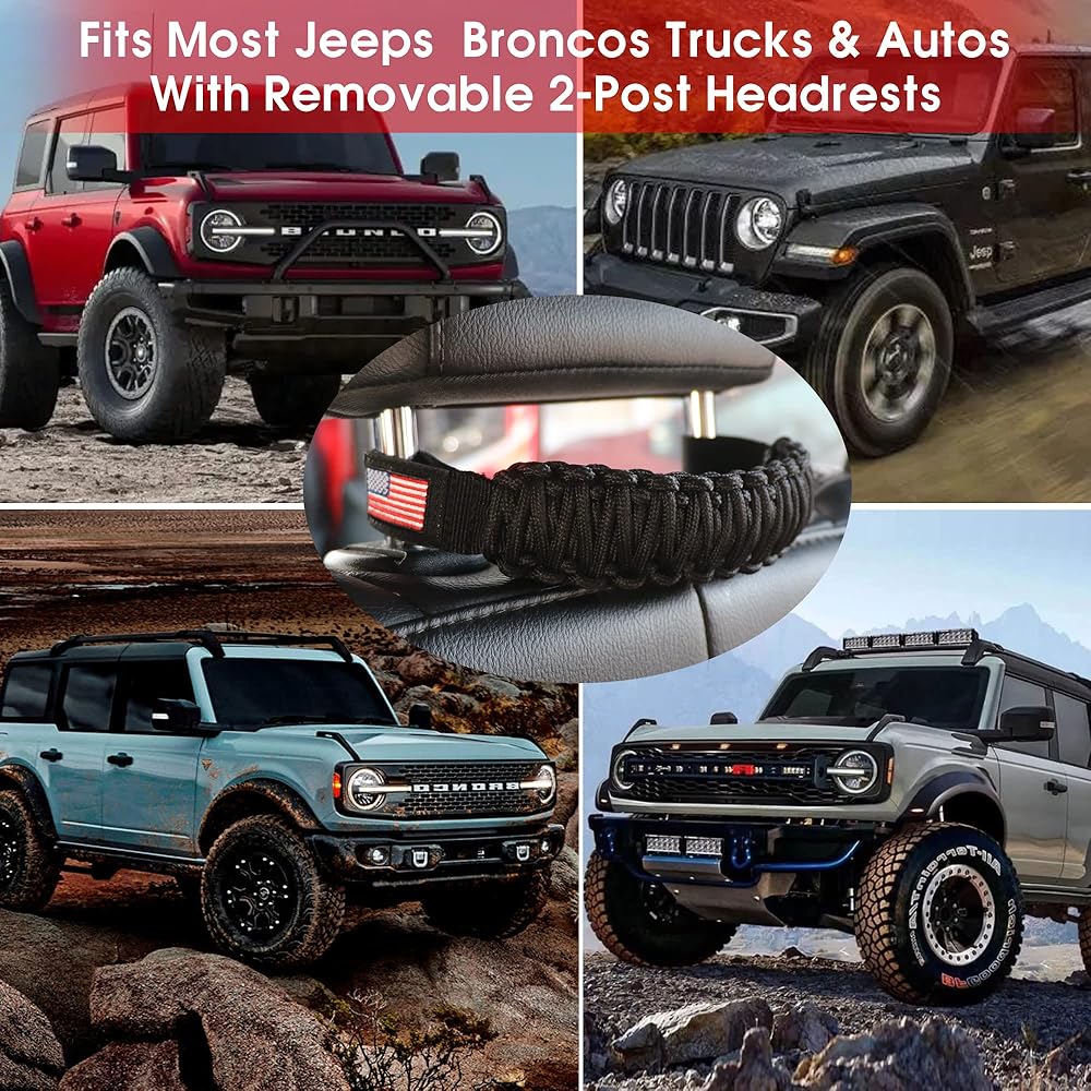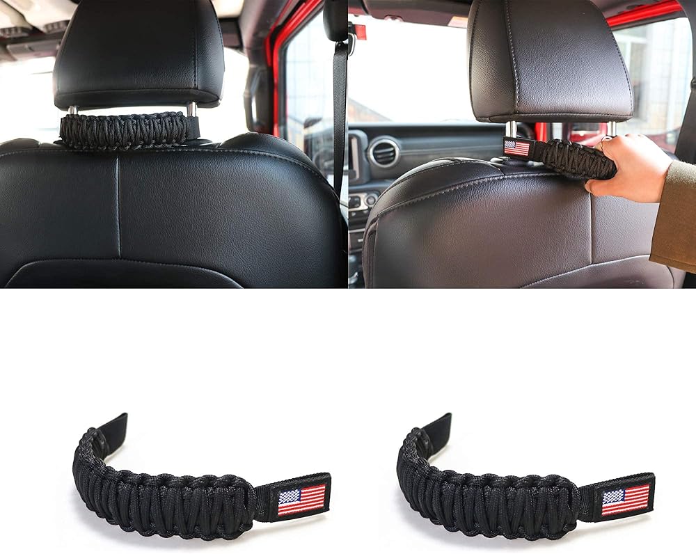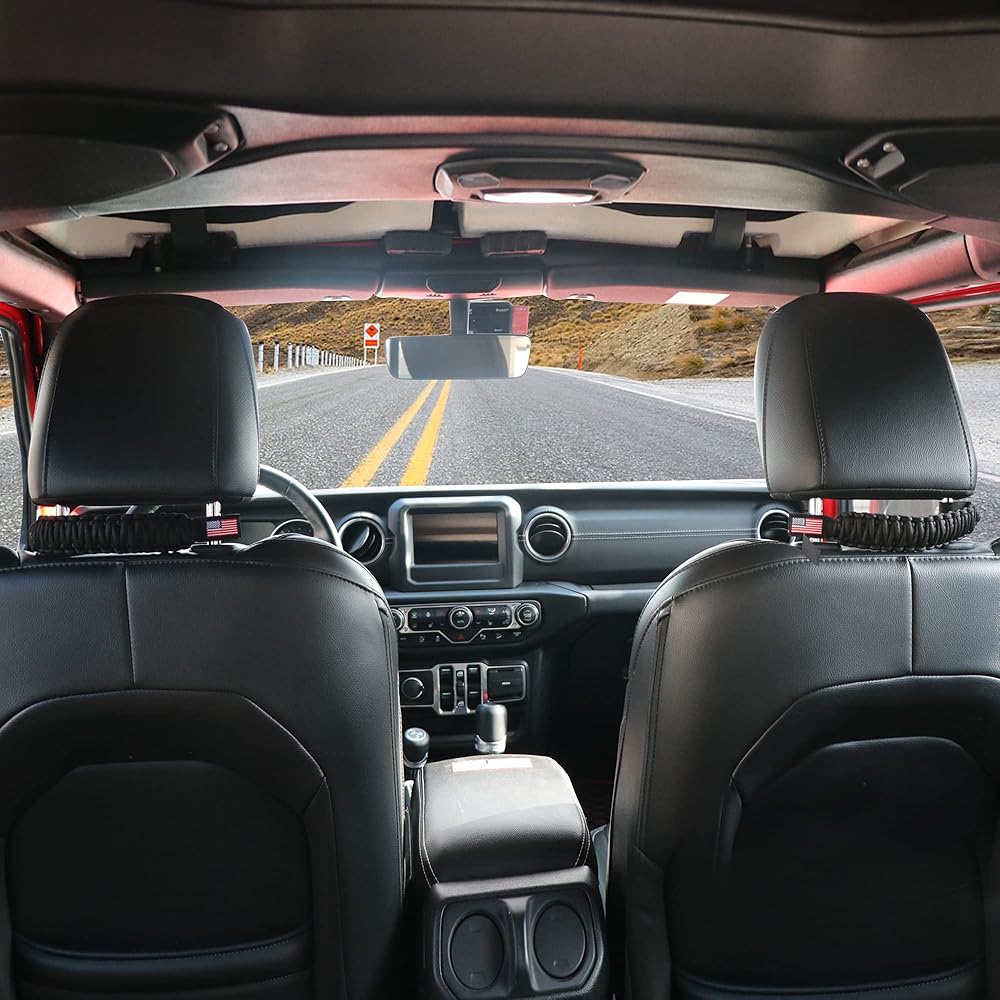 UNIVERSAL COMPATIBILITY - Headrest Grab Handles fit for all years jeep wrangler, including the YJ TJ JK JKU JL JLU Sports, Sahara, Rubicon, & Gladiator JT, ATV, UTV, and Ford Bronco 2021 2022, Trucks, SUV, Auto and etc.