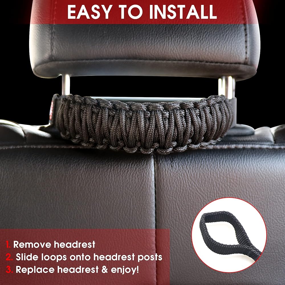 EASY INSTALLATION - No tools required, install in 2 minute, just remove the headrests and thread the column through the loops on the handles, the rear passenger handle will work on any round or square posts.