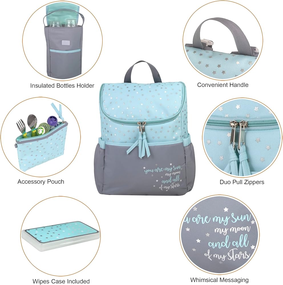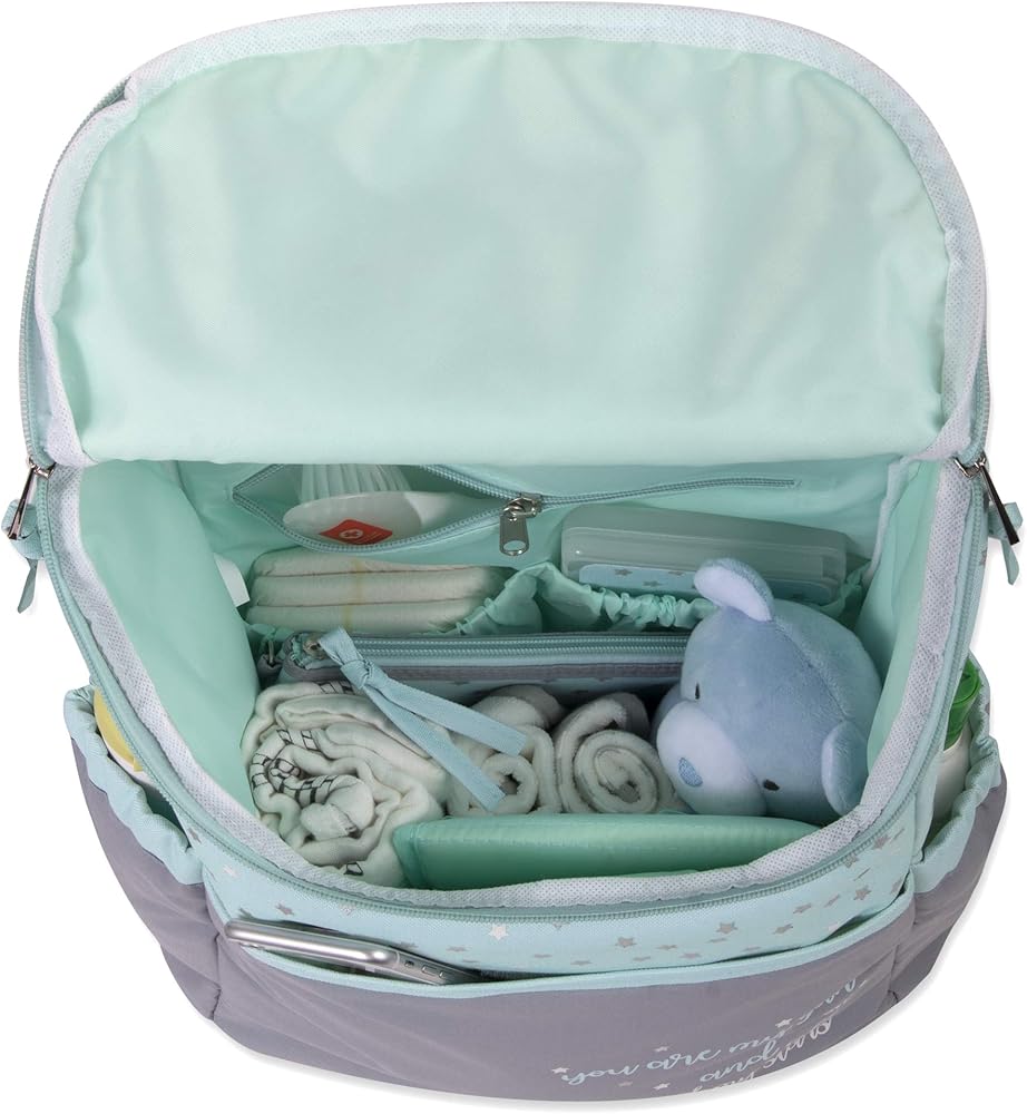 FIVE EASILY ACCESSIBLE POCKETS: Exterior of diaper bag organizes baby's favorite toys, stuffed animals, games, wallet, sanitary wipes, tissues, and more. Grab whatever you need, even if you only have one hand free